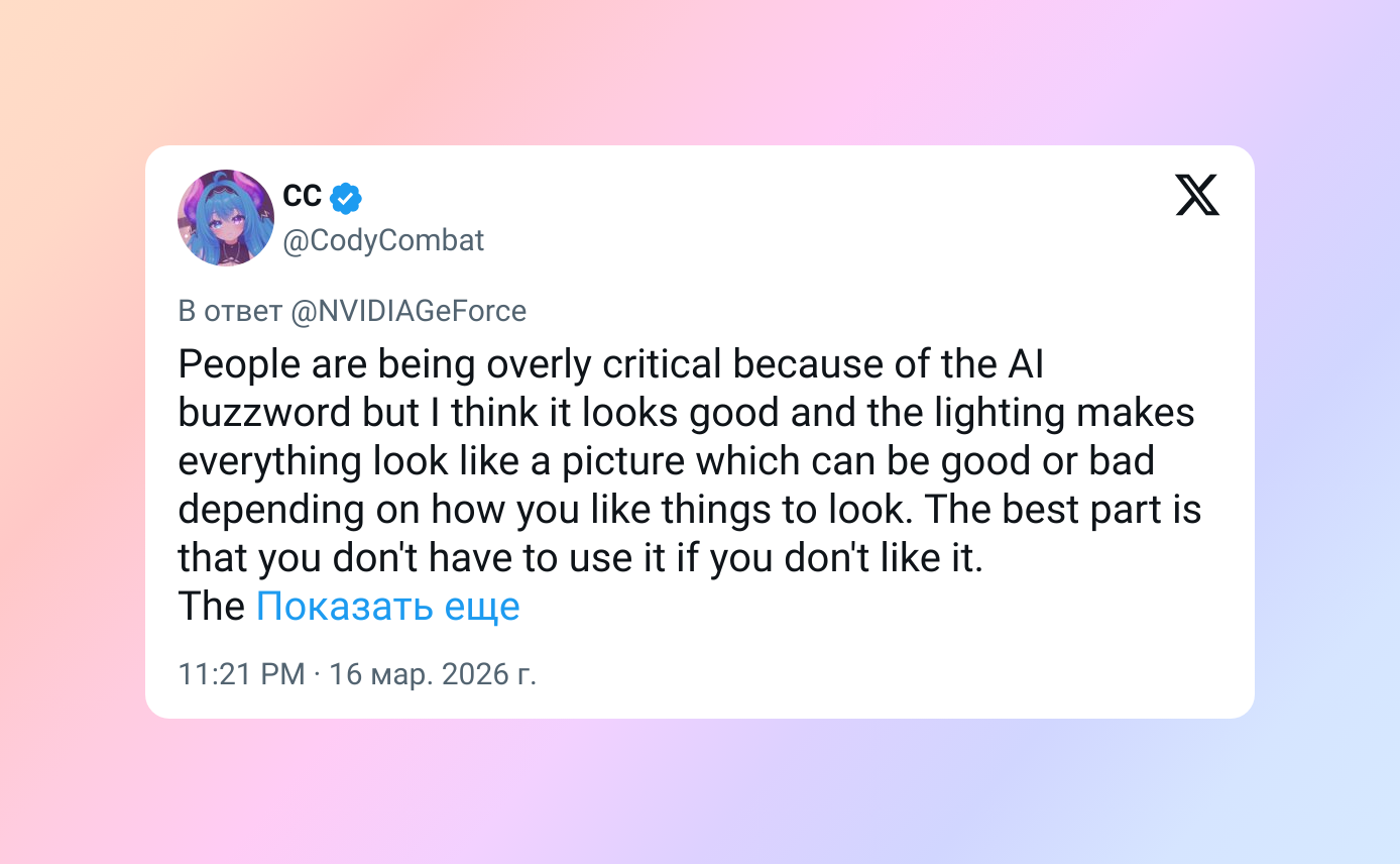 «Бесит до невозможности»: геймеры не оценили DLSS 5 — новую ИИ-технологию, улучшающую картинку в играх