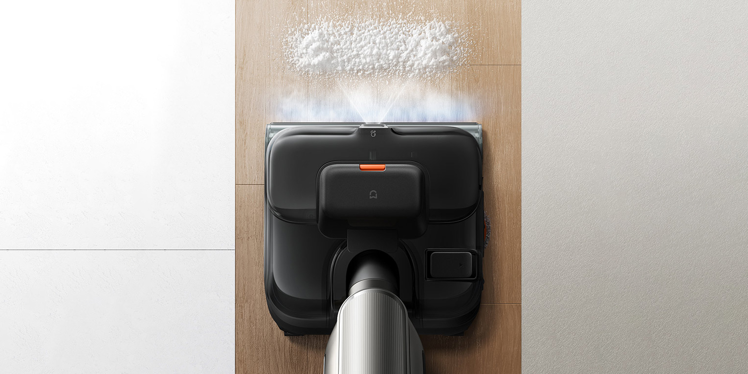 Xiaomi новый беспроводной пылесос для влажной уборки — Mijia Floor Scrubber 5 Max. В модели используется тройная система очистки. Пылесос подаёт пар температурой до 160 °C, который помогает растворять грязь, удалять сложные пятна и одновременно стерилизовать поверхность. Дополнительно система распыляет плотную пену для борьбы с жирными загрязнениями. А горячая вода температурой 90 °C размягчает липкие пятна, содержащие сахар — например, следы сока.