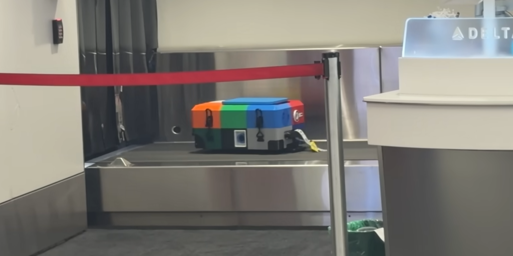 Но все эти эффекты теряют смысл, если чемодан не выдерживает реальных условий. И в этом смысле изобретение не прошло проверку: после короткого перелёта из Нью‑Йорка в Берлингтон на корпусе появились микротрещины, а некоторые внешние аксессуары — крышка для закусок и держатель для кофе — вообще отвалились.