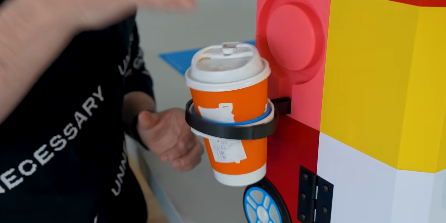 Чемодан оснащён откидным столиком, держателем для телефона MagSafe, контейнером для еды и даже потайными отделениями в ножках для AirTag. Особая гордость изобретателя — самобалансирующийся держатель для кофе, который не даёт напитку расплескаться при резких остановках в аэропорту.