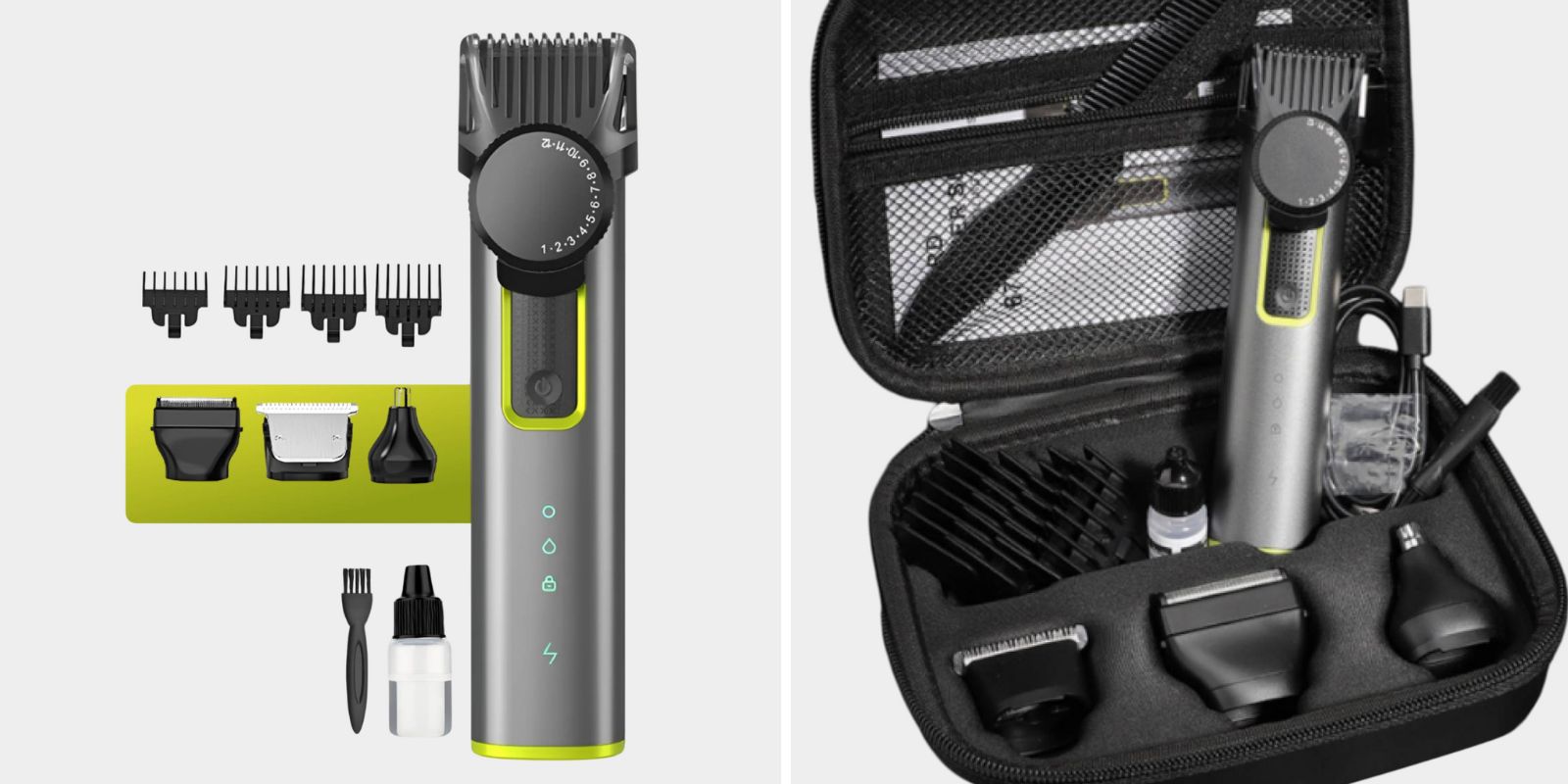 В комплекте с триммером идут насадки для стрижки волос на голове и теле, для аккуратной обработки полостей носа и ушей, а также для подравнивания бороды и усов — полный набор, который позволяет реже бегать к барберу. Лезвия сделаны из нержавеющей стали, поэтому не боятся воды, а их скруглённая форма помогает избежать порезов.
