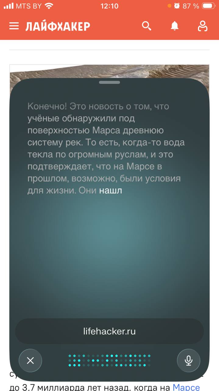 Одна из особенностей iOS-версии — голосовой режим. Можно задавать вопросы вслух и получать развёрнутые ответы, не отвлекаясь от текущей страницы. Ассистент при этом учитывает открытые вкладки.