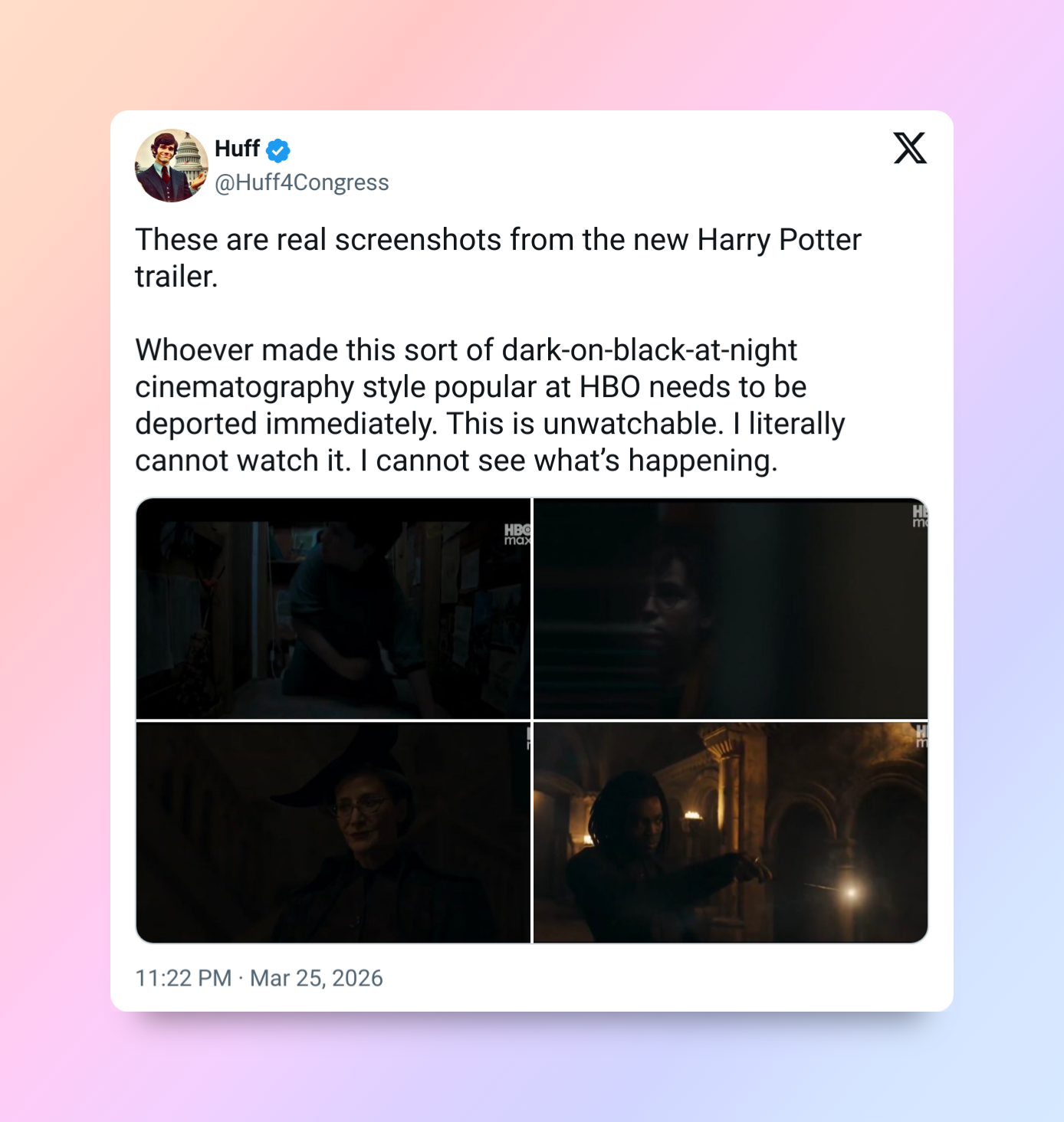 Вчера HBO выпустил долгожданный трейлер грядущего сериала «Гарри Поттер», и ролик предсказуемо разделил аудиторию. Одни остались в восторге, другие сразу раскритиковали актёрский состав и отдельные сюжетные решения. Теперь в Сети обсуждают ещё одну деталь — цветокоррекцию. Пользователи шутят, что в кадре настолько темно, что почти ничего не видно.