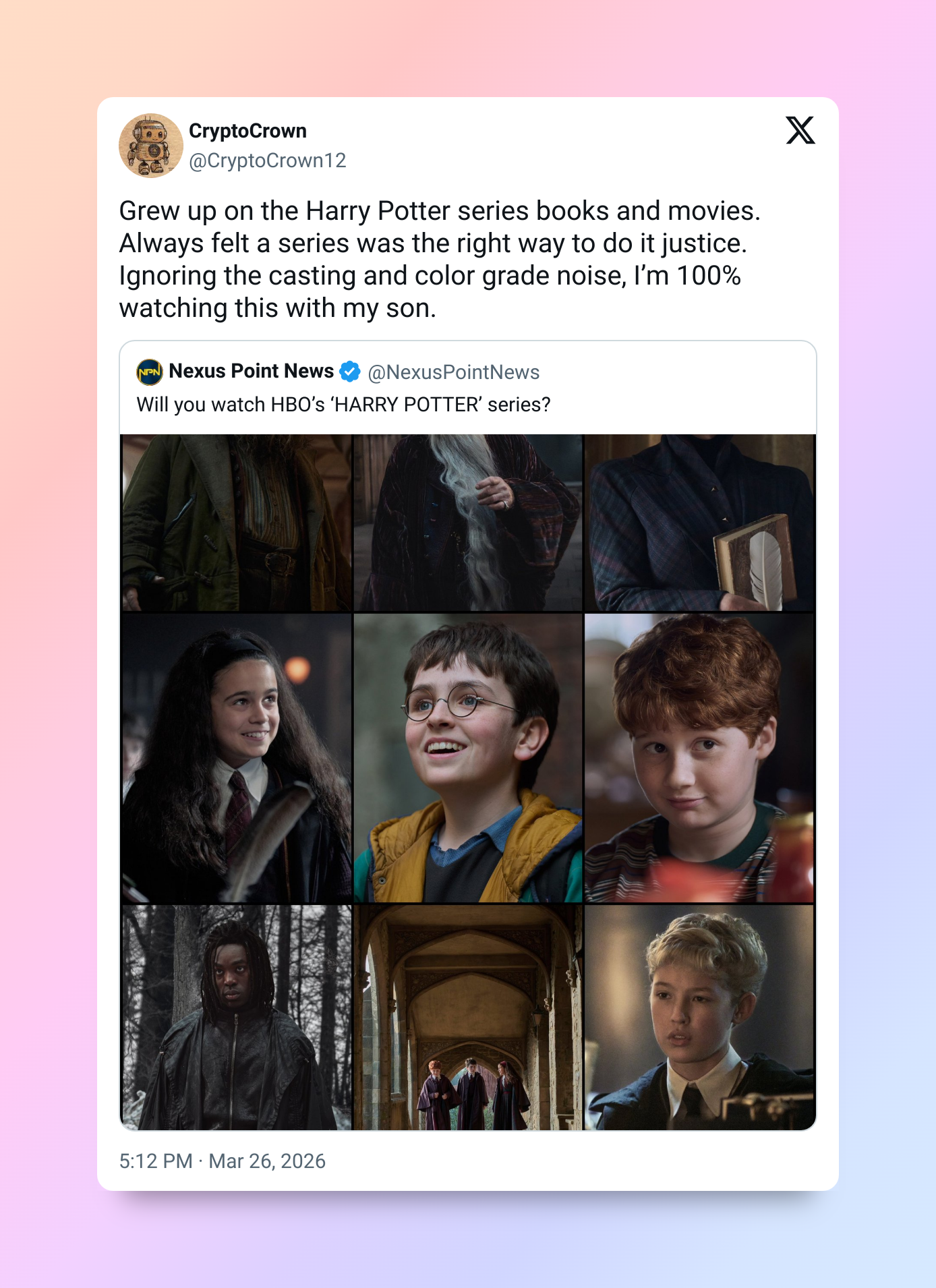«Я вырос на книгах о Гарри и фильмах по ним. Если не обращать внимания на проблемы с подбором актёров и цветокоррекцией, я обязательно посмотрю этот новый сериал со своим сыном».