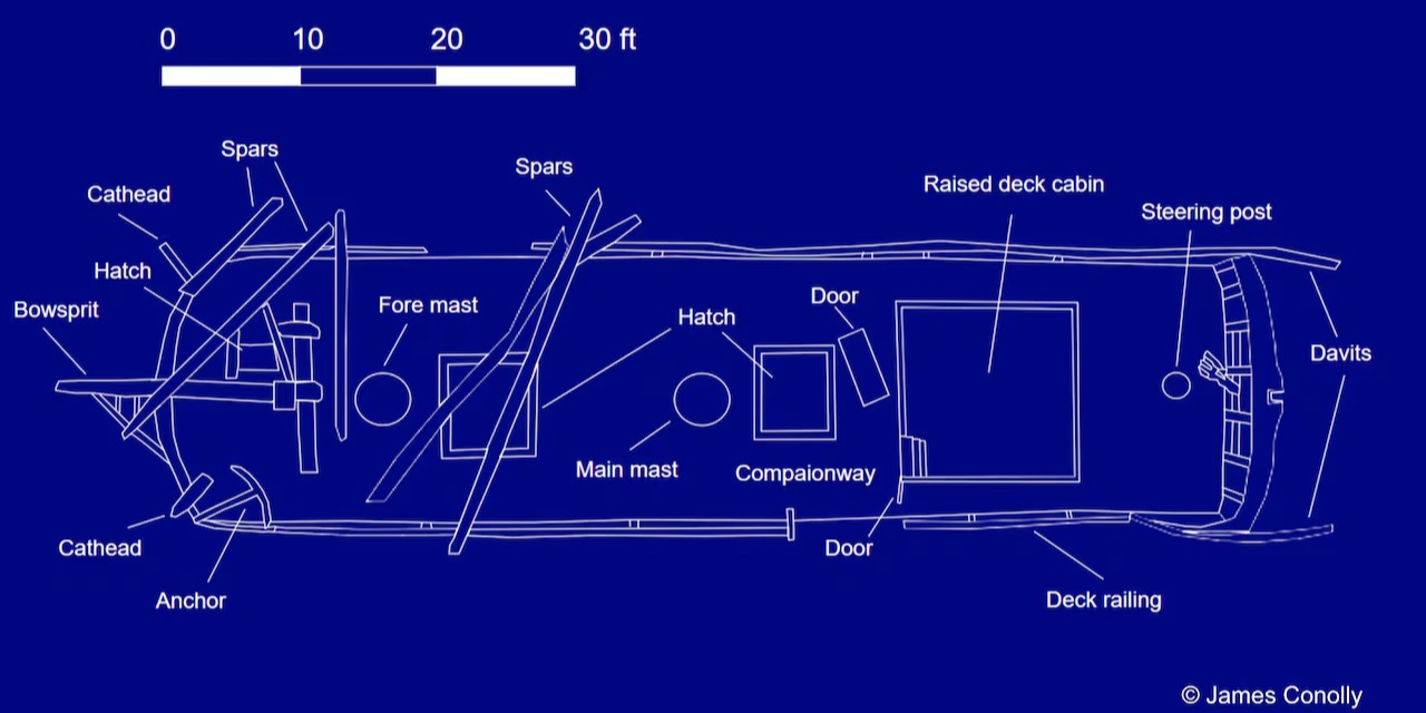 Объект, расположенный на глубине около 100 метров, впервые заметили в 2017 году во время прокладки подводного кабеля. Тогда археолог Джеймс Конолли предположил, что это может быть двухмачтовая шхуна, построенная в 1884 году и затонувшая в 1917‑м. Однако теперь есть основания полагать, что это другое судно, которое минимум на полвека старше.