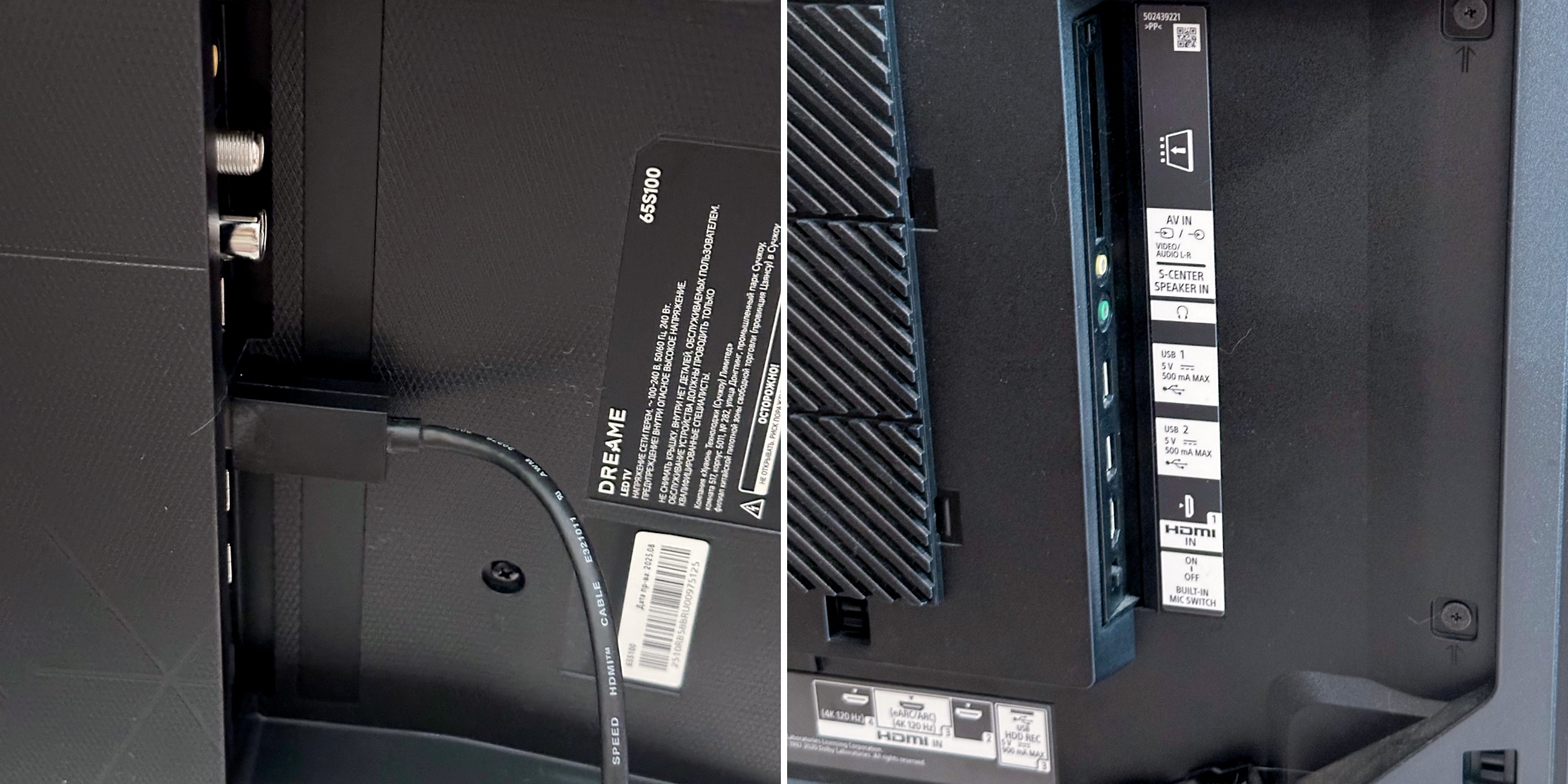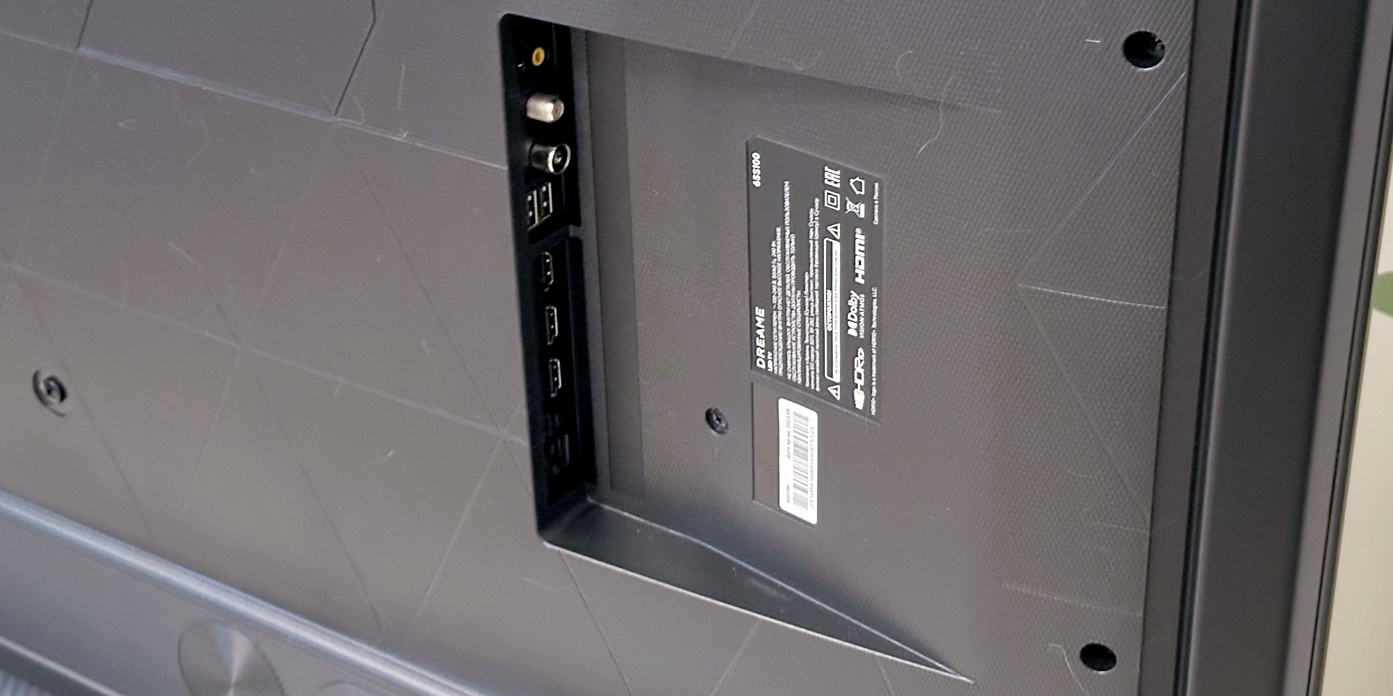 У Dreame S100 адекватный набор портов: три USB‑A, один из которых — быстрый 3.0, три HDMI 2.1 (само собой, подходят для подключения игровых приставок, ПК и примерно всего, что может потребоваться, — главное подобрать хороший кабель), аудиопорт 3,5 мм, композитный AV-выход (тюльпаны в комплекте), а также CI+ и Ethernet.