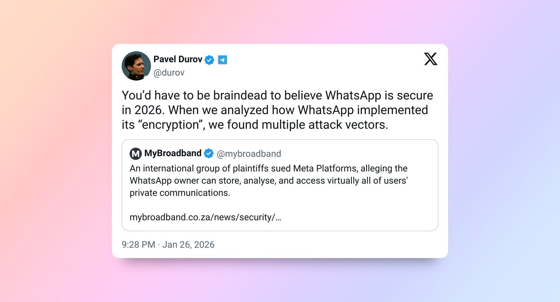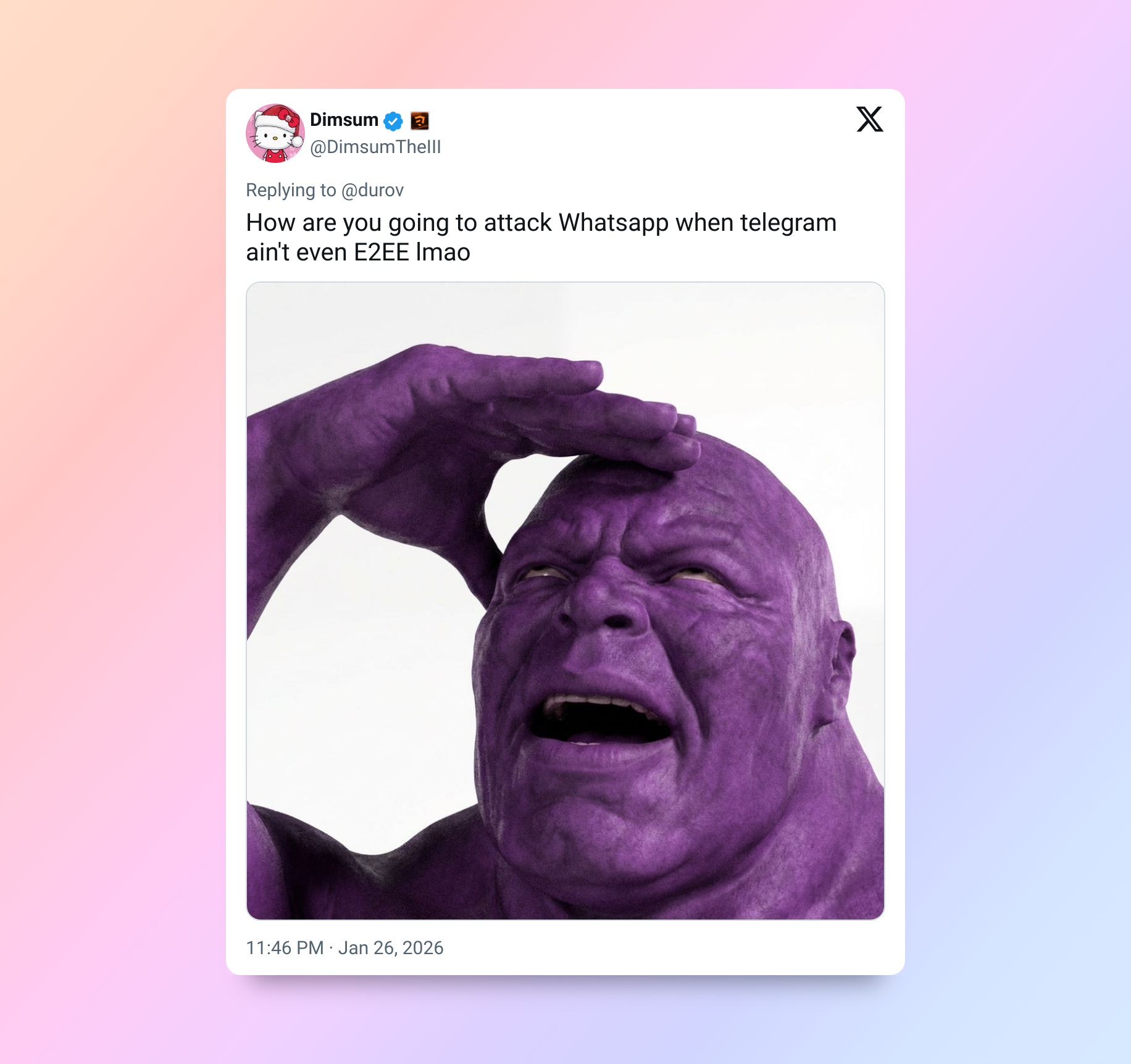 «Как можно нападать на WhatsApp, если Telegram даже не поддерживает сквозное шифрование (E2EE)?».