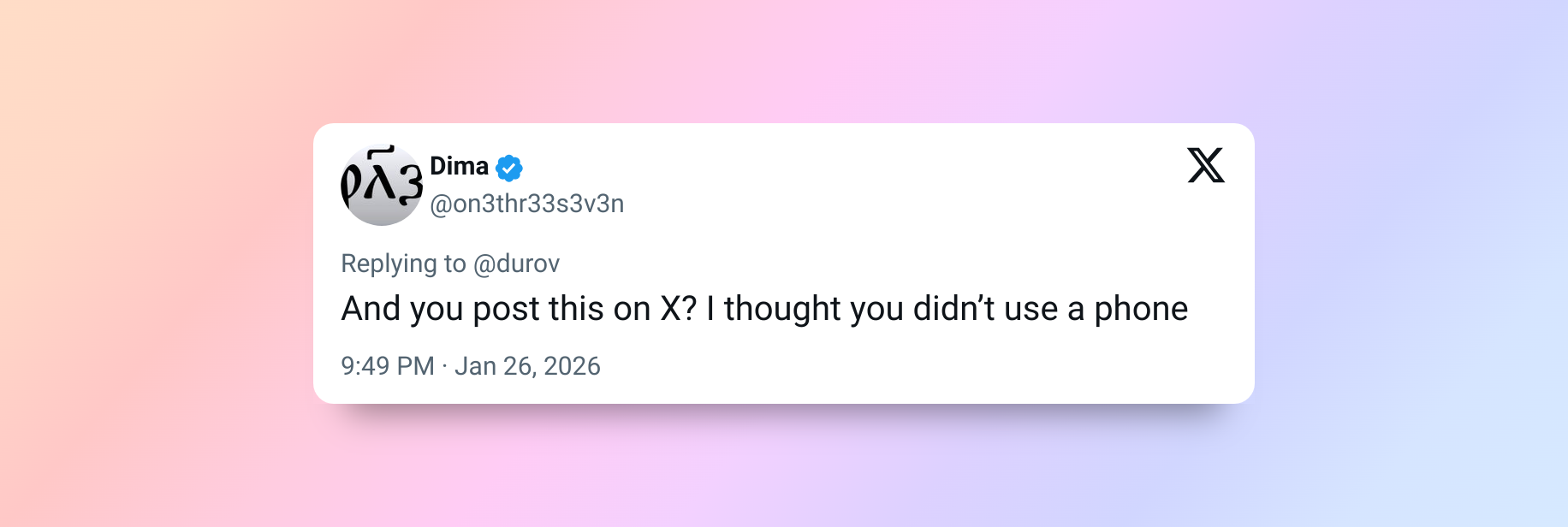 «И ты это выложил в X? Я думал, ты не пользуешься телефоном».