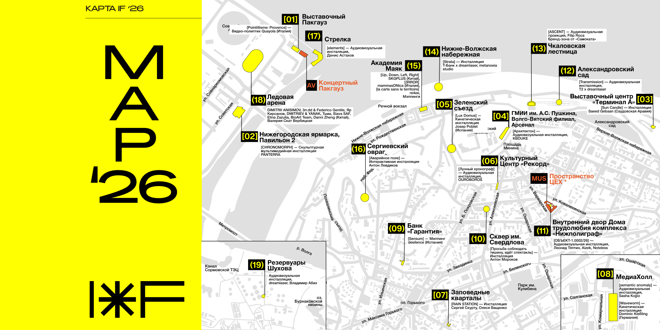 С 23 по 26 апреля в Нижнем Новгороде пройдёт международный фестиваль медиаискусства INTERVALS 2026. В этот раз главной темой выбрали «Знак / Символ» — зрителям предложат взглянуть на город не просто как на набор улиц, а как на сложный код, который можно расшифровать. Маршрут охватит более 20 локаций: от исторических «Заповедных кварталов» до необычного Выставочного Пакгауза.