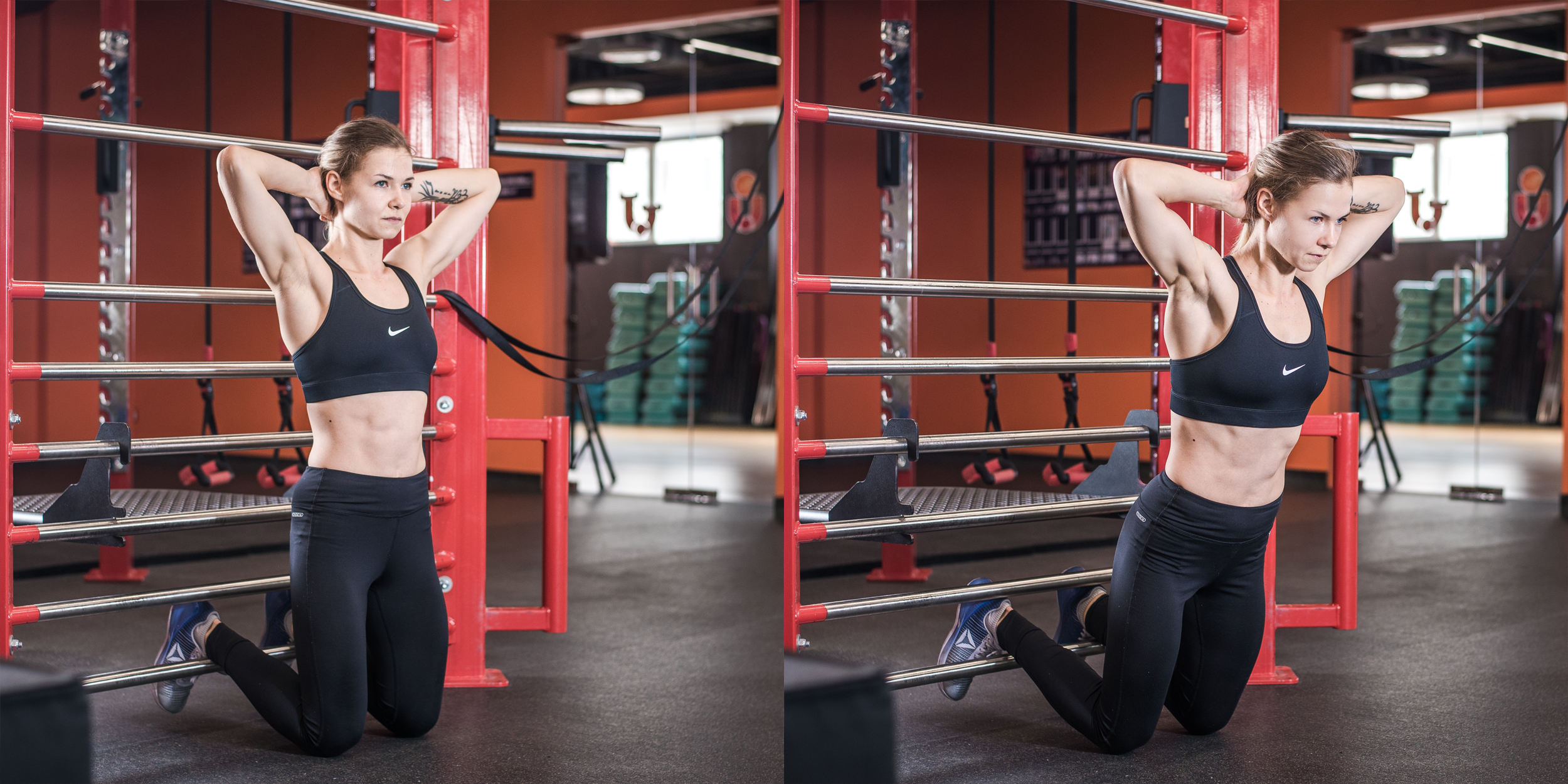 Подстелите коврик, чтобы не больно было стоять коленями на полу, зафиксируйте ноги, вытяните корпус и бёдра в одну линию. Наклоняйтесь вперёд, пока получается сохранить прямое положение корпуса и не сгибаться в тазобедренных суставах. Поднимитесь обратно и повторите.