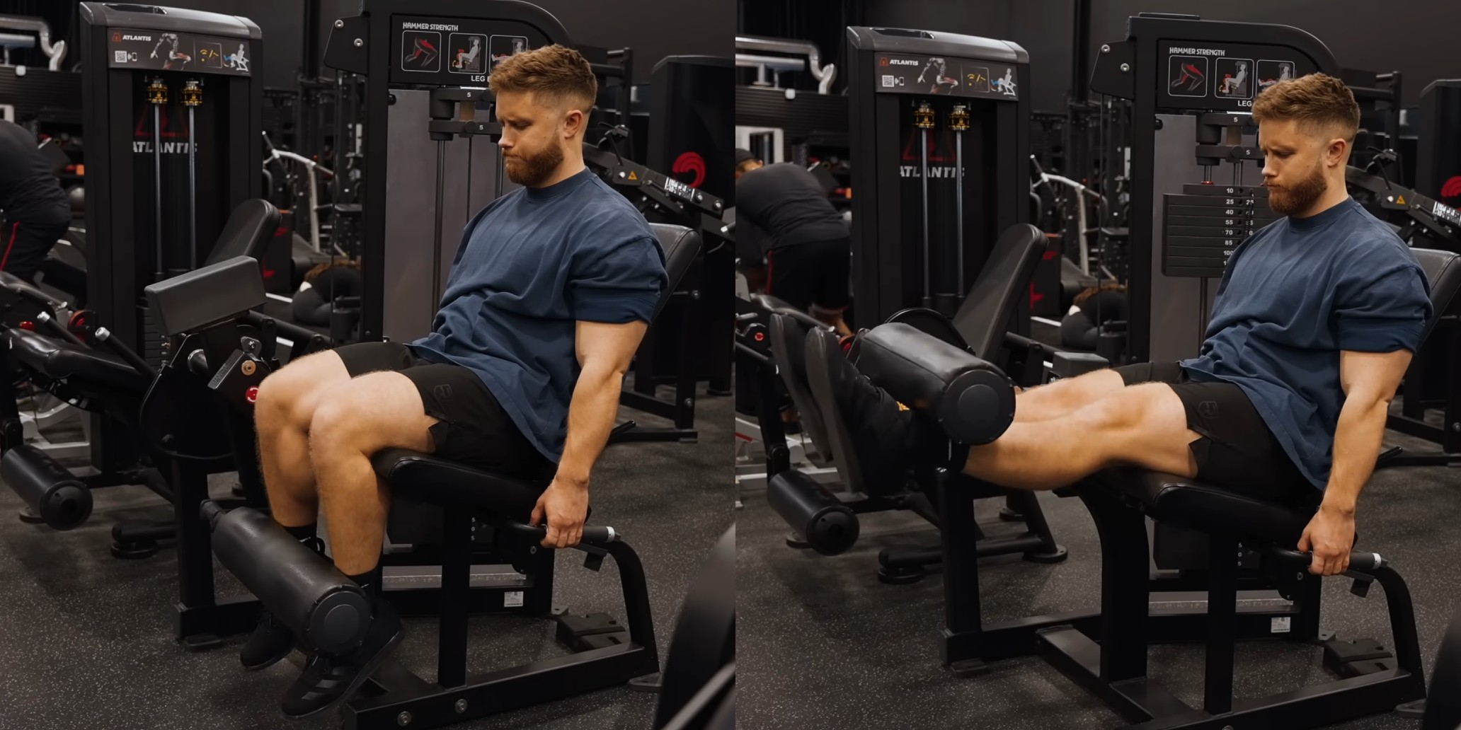 Сядьте на тренажёр, заведите ноги за валик и прижмите спину к креслу. Преодолевая сопротивление, разогните ноги в коленных суставах, плавно вернитесь в исходное положение и повторите.