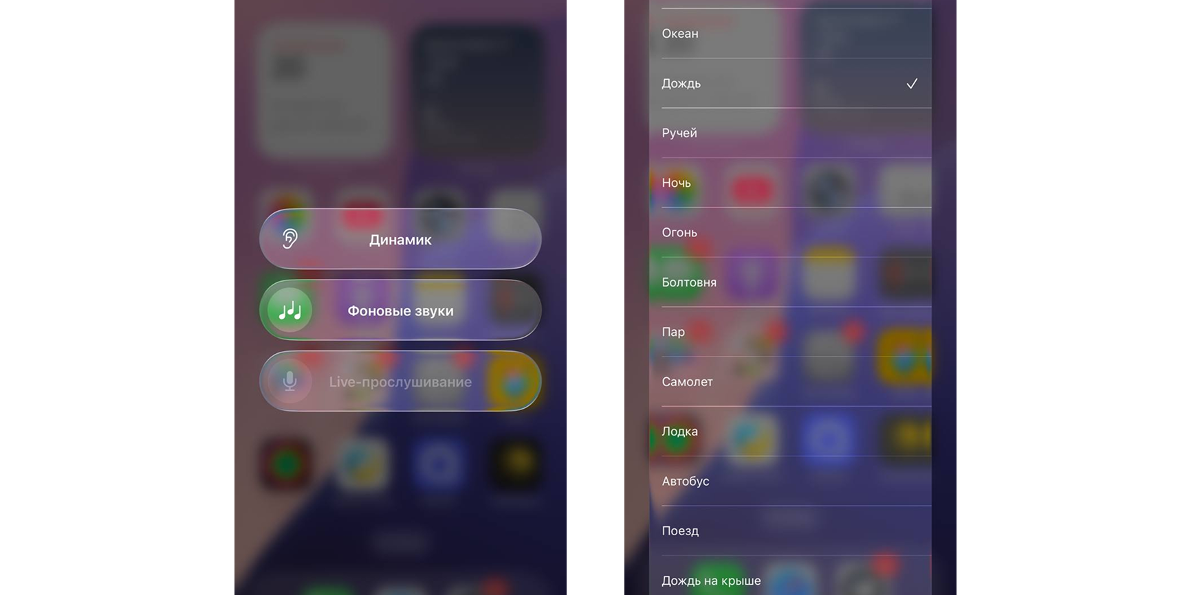 Для начала я попробовала фоновые звуки во встроенных функциях iPhone. Там можно найти океан, ручей, дождь, огонь, шум ночного леса и не только.
