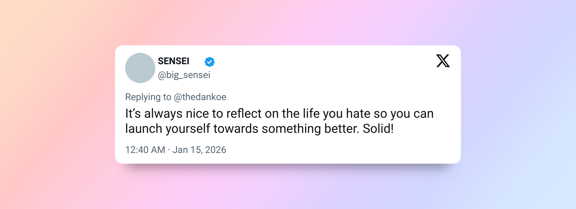 «Всегда полезно поразмышлять о жизни, которая тебе не нравится, чтобы потом двигаться к чему-то лучшему. Отлично!», — SENSEI.