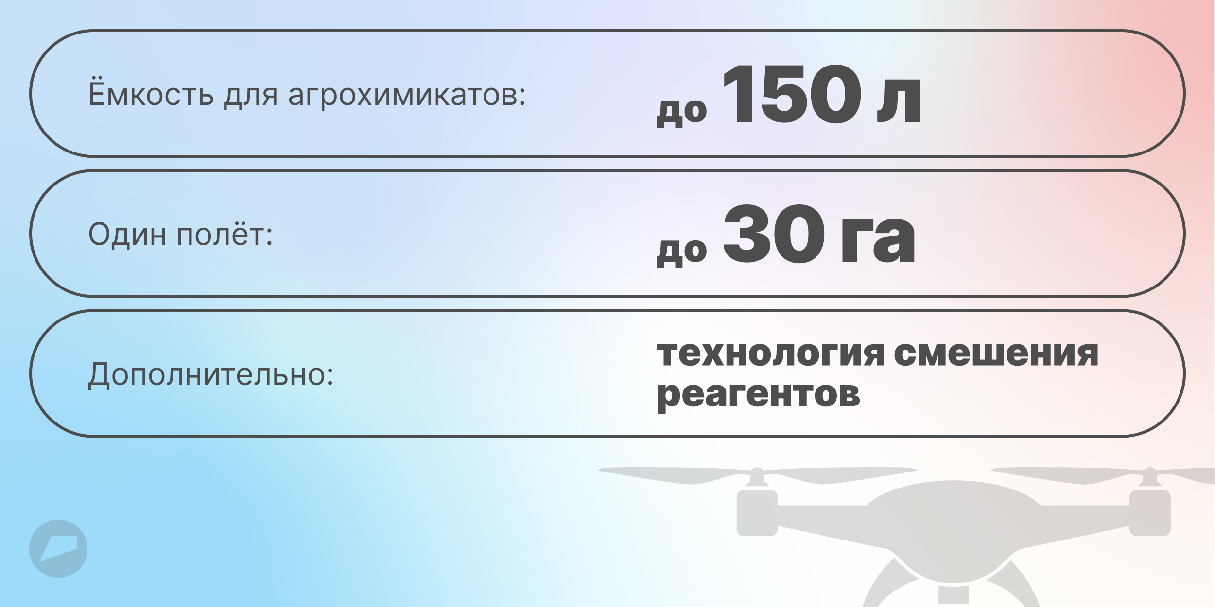 Кроме того, дроны используют технологию мелкодисперсного распыления: она помогает равномернее покрывать растения и точечно обрабатывать нужные участки. За счёт этого снижается расход химикатов и повышается эффективность обработки, что в итоге положительно влияет на урожайность.