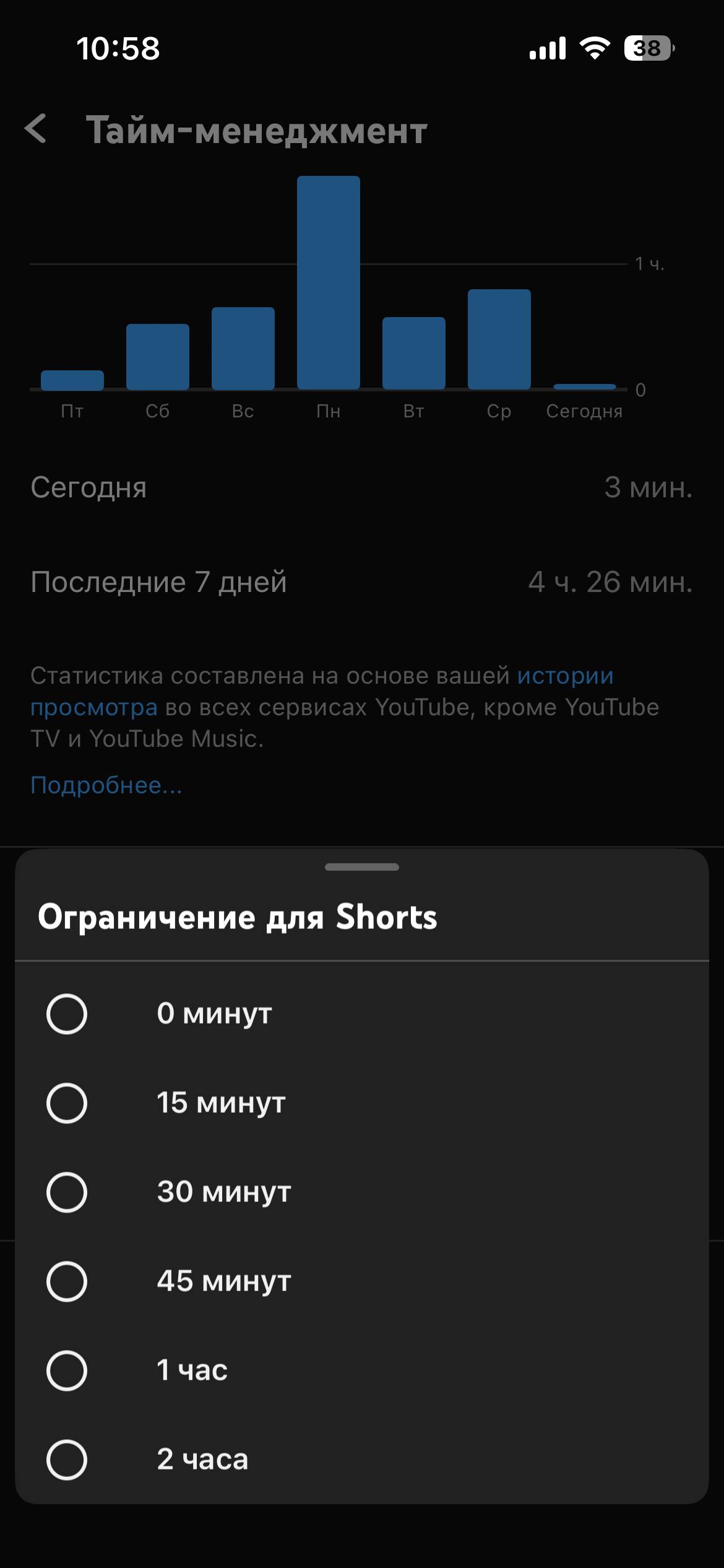 Теперь из мобильного приложения YouTube для Android и iOS можно практически полностью убрать вертикальные ролики. Для этого в настройки тайм-менеджмента возможность установить лимит на просмотр роликов Shorts в ноль минут. Раньше минимальный порог составлял 15 минут, что оставляло лазейку для бесконечного скроллинга.