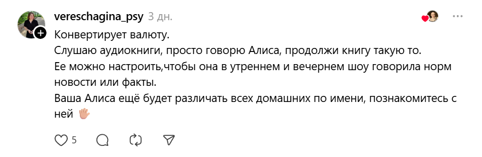 Всё началось с простого сообщения: пользовательница Threads написала, что купила «Станцию», и попросила других рассказать, что она умеет.