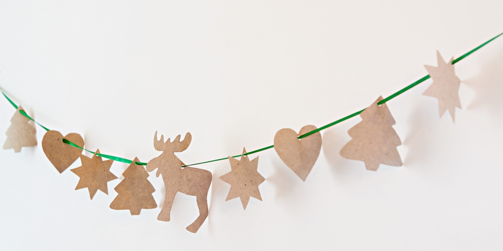 Ещё один способ сделать экологичную гирлянду. Чтобы такое украшение меньше вредило природе, используйте старые крафтовые пакеты.