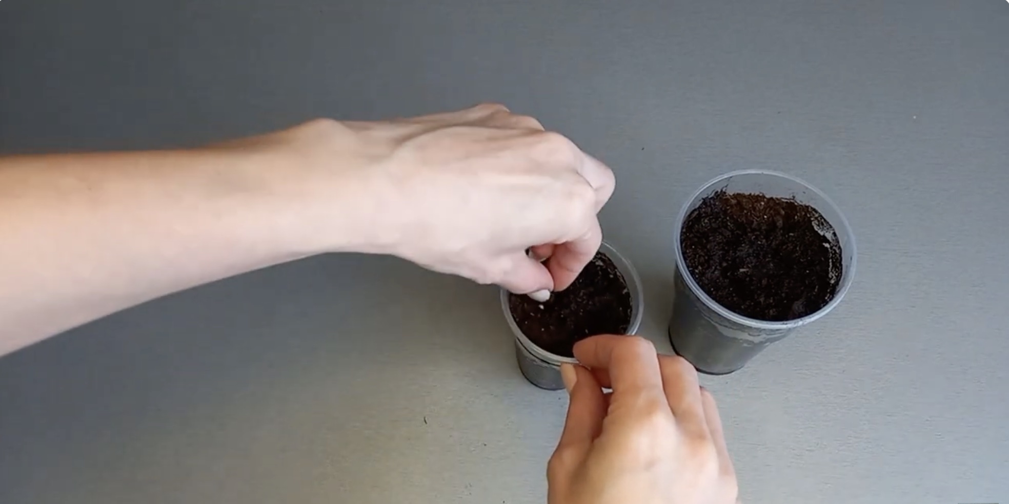 Я кладу на дно горшков кусочек бумажной салфетки, чтобы земля не вываливалась через дренажные отверстия. Наполните ёмкости почвой. Подойдёт универсальный питательный грунт для овощей и цветов со слабокислой или нейтральной реакцией (pH 6,0–7,0). Утрамбуйте землю пальцами так, чтобы между поверхностью субстрата и краями стакана оставалось около 1 см свободного пространства.