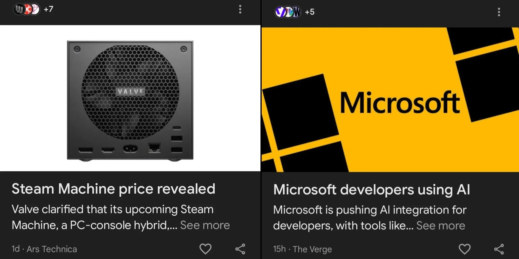 В новостной ленте Google Discover проводится эксперимент: оригинальные заголовки новостей заменяются на короткие ИИ‑версии. Это волну критики со стороны СМИ, поскольку иногда искуственный интеллект генерирует совершенно абсурдные тайтлы. Кроме того, он явно склоняется к кликбетному формату, что сама компания ранее не жаловала.