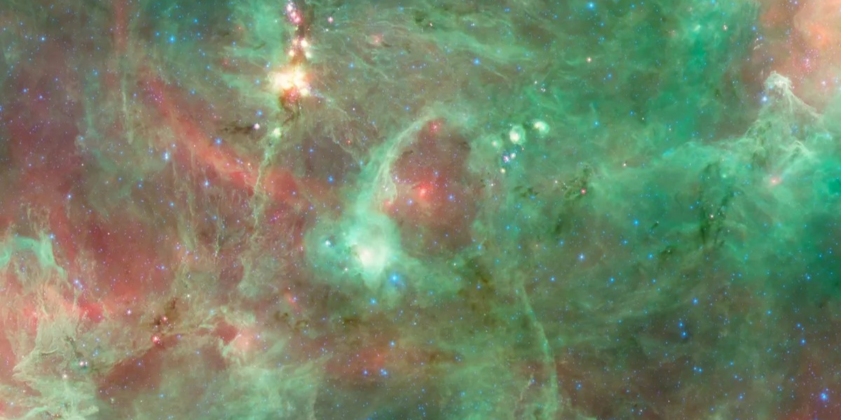 Сияние космоса может соперничать с блеском драгоценных камней. На фотографии изображён расширяющийся пузырь газа в области звездообразования созвездия Лебедя. Его диаметр достигает около 20 световых лет, а возраст оценивается в 400 000 лет. Снимок сделан в инфракрасном диапазоне.
