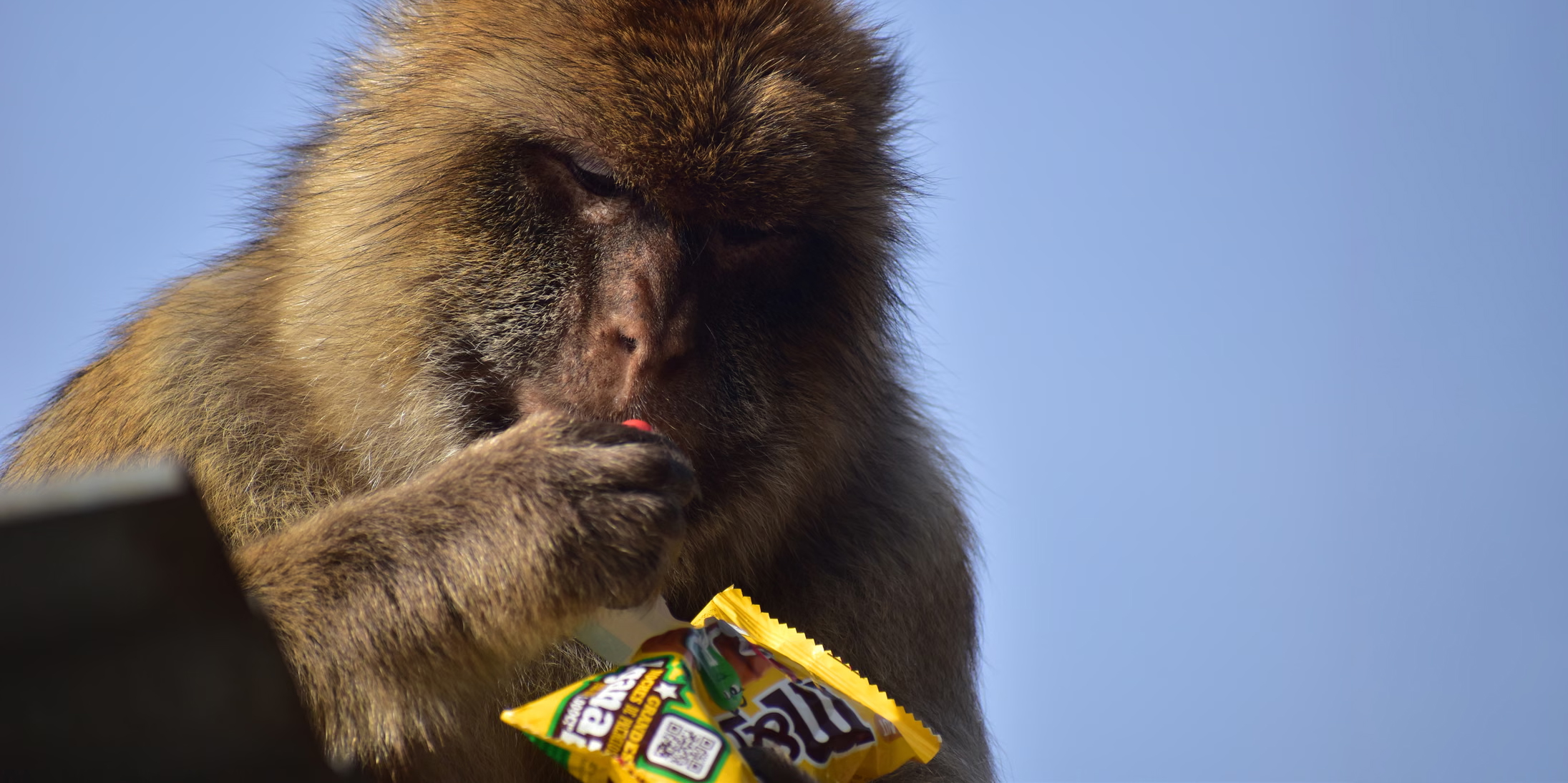 Почти пятую часть рациона гибралтарских макак теперь составляют продукты, полученные от людей: чипсы, шоколадные батончики, M&M’s и даже Coca-Cola. Обезьяны проявляют особую любовь к мороженому марок Magnum и Cornetto, но практически игнорируют фруктовый сорбет. В нескольких зафиксированных случаях приматы принимались за грязь сразу после того, как съедали порцию сладостей или хлеба.
