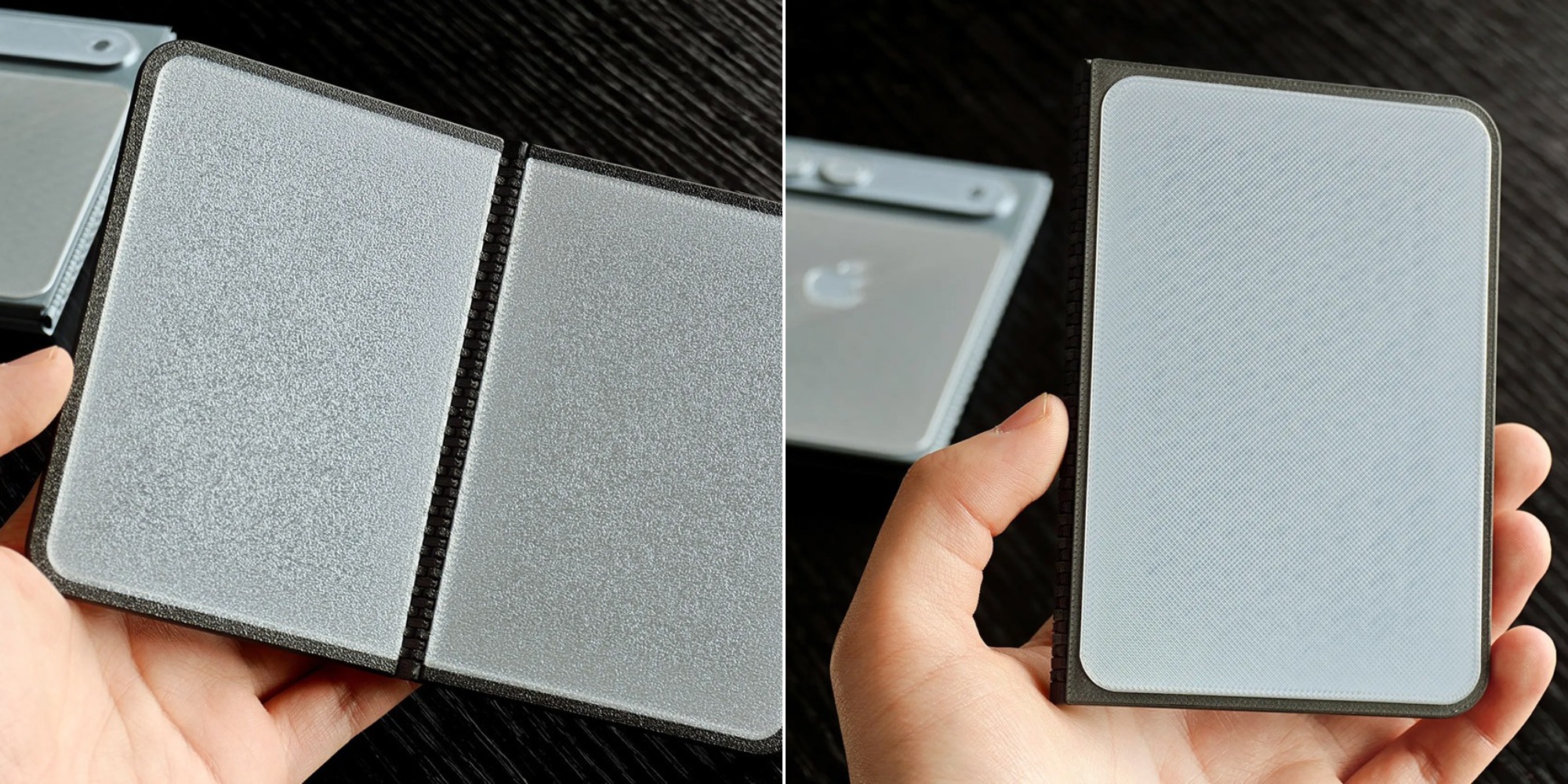 Толщина корпуса в сложенном виде составляет около 9,6 миллиметра — чуть больше, чем у современных моделей iPhone.