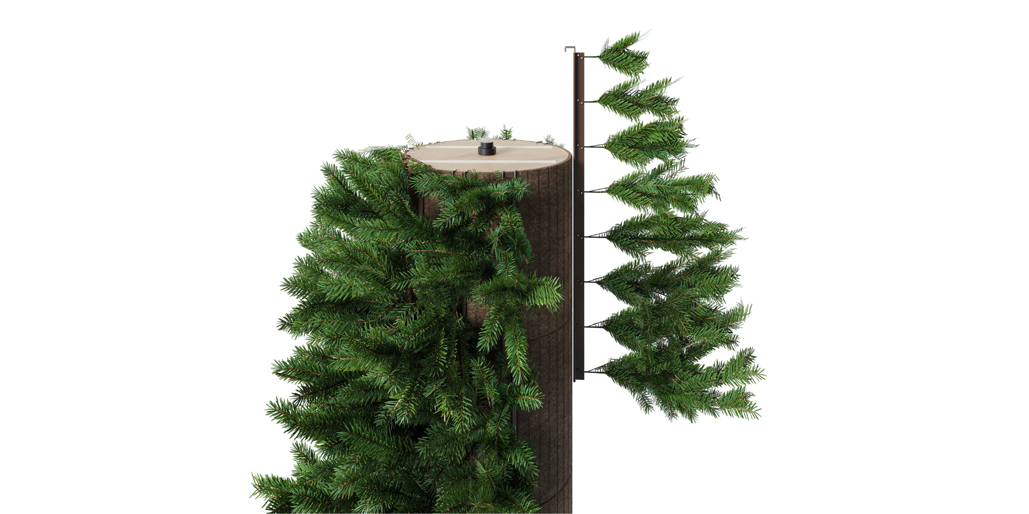 В праздничный сезон к домику прикрепляются искусственные ветви, и он превращается в полноценную ёлку высотой около двух метров. Ветки сделаны из пластика и подходят для лёгких украшений.