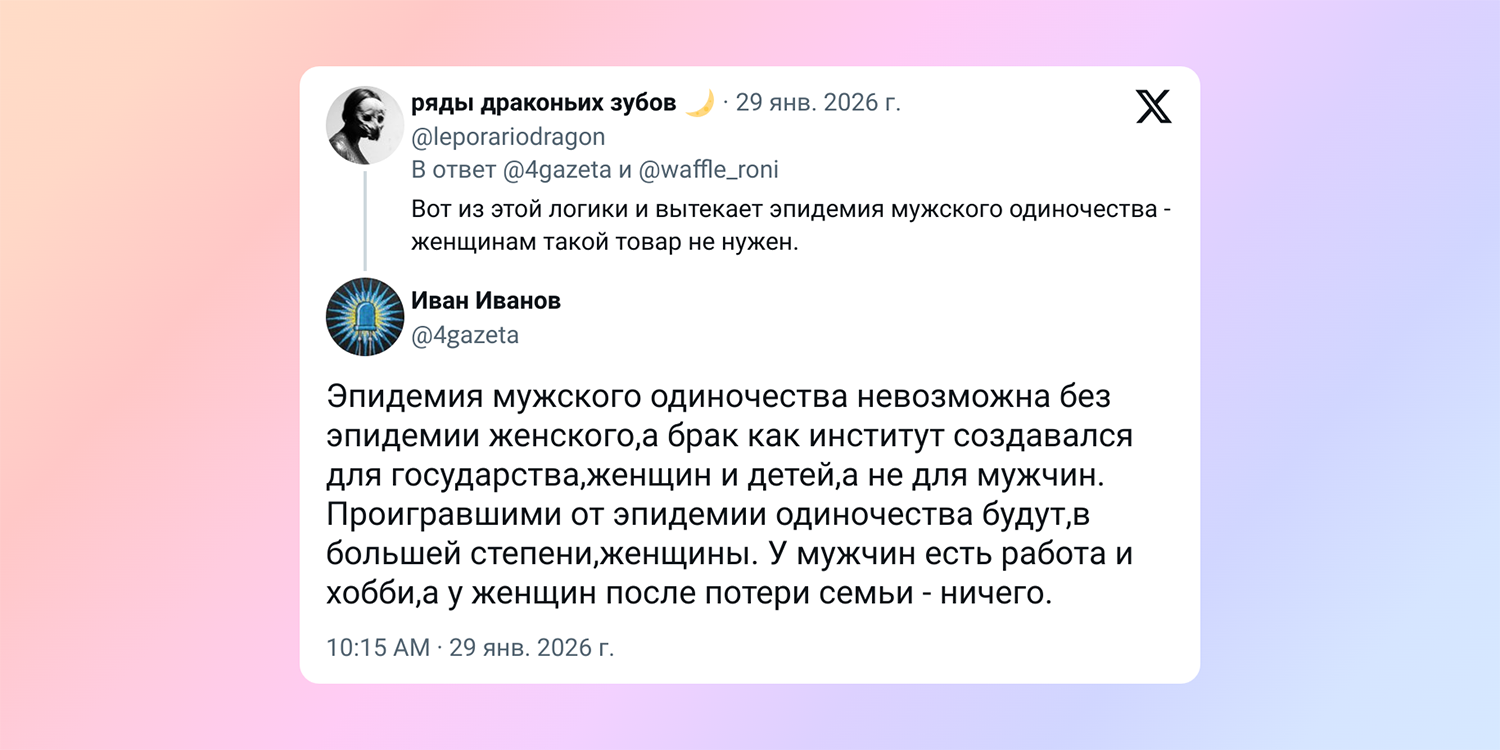 В соцсетях периодически встречается понятие «эпидемия мужского одиночества», хотя для многих это выглядит как мем.
