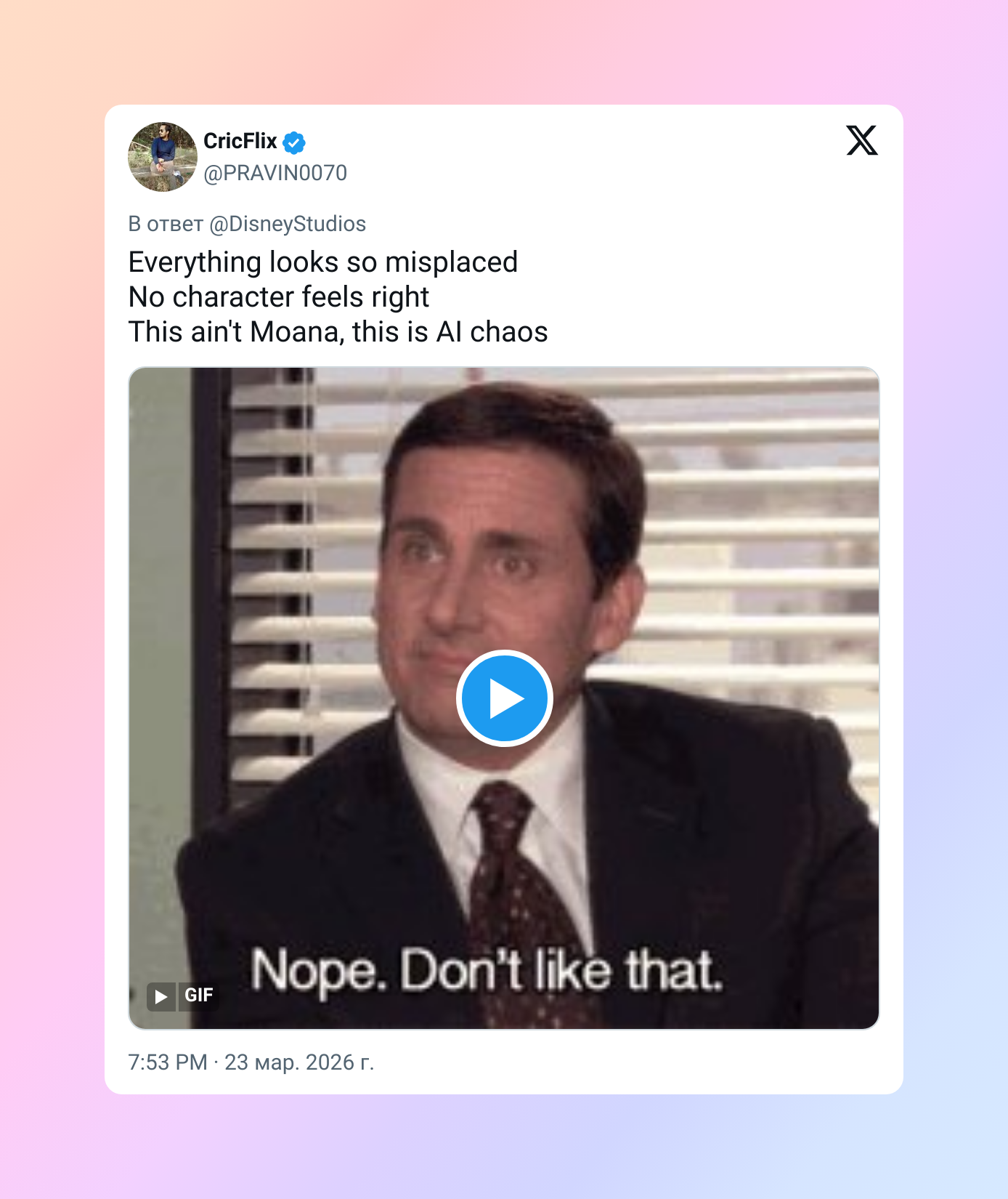 Всё какое-то не такое. Персонажи совсем не попадают в образ. Это не «Моана» — это ИИ-хаос.