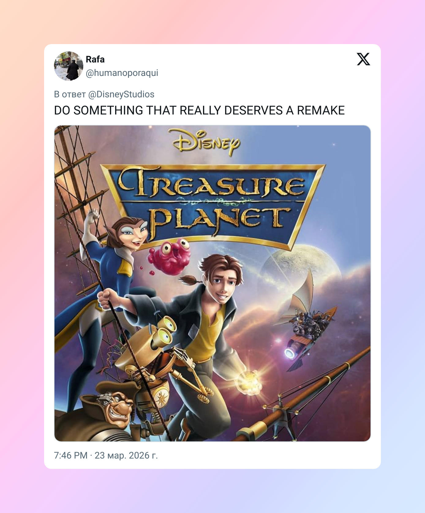 Кто-то написал, что лучше бы Disney сделала ремейк «Планеты сокровищ».