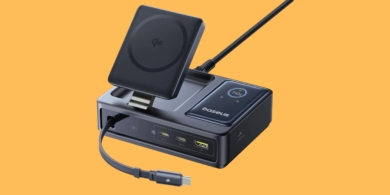 Настольная станция Baseus Nomos помогает поддерживать порядок на рабочем столе: она избавляет от кучи зарядных устройств и кабелей, потому что подходит для одновременной подпитки пяти гаджетов, включая энергоёмкие ноутбуки.