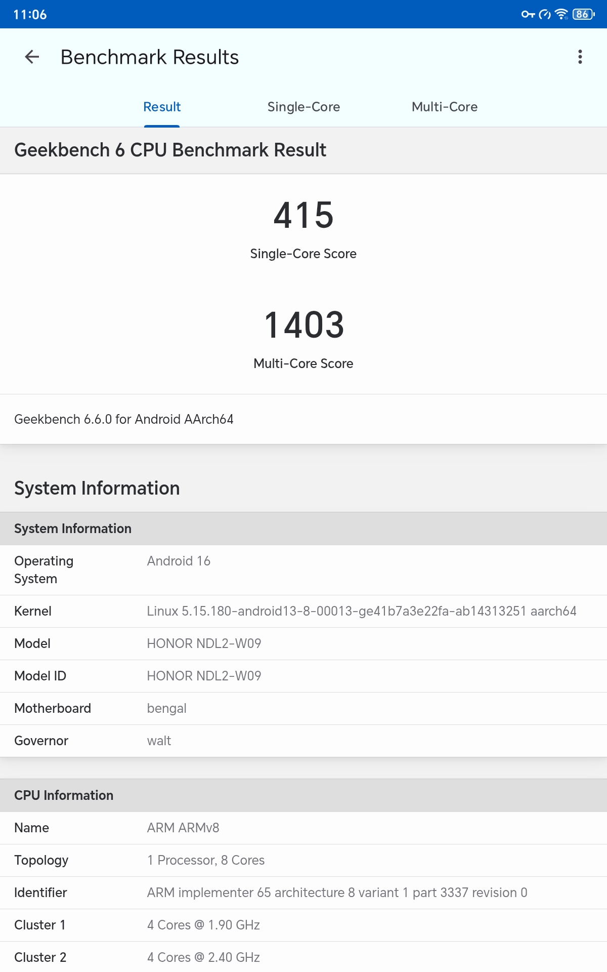 Экономия ради удешевления отразилась не только на экране, но и на начинке. У Honor Pad X8b она такая же, как у двухлетнего Pad X8a — на базе процессора Snapdragon 680, который подходит для базовых задач. Только на бенчмарки, конечно, ориентироваться не нужно, но цифры здесь такие:
