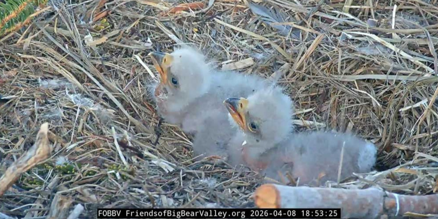 Интернет‑знаменитости Джекки и Шэдоу, пара белоголовых орланов из Национального леса Сан‑Бернардино на юге Калифорнии, снова стали родителями. Недавно у них вылупились два птенца, и теперь организация Friends of Big Bear Valley (FOBBV) на своём сайте выбрать для них имена.
