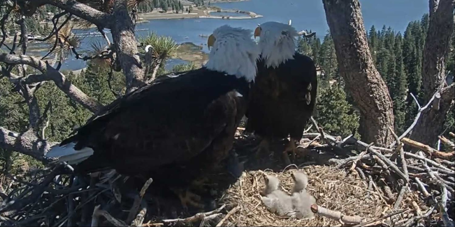 С 2021 года за жизнью этой пернатой семьи круглосуточно наблюдают тысячи зрителей через из гнезда в долине Биг‑Беар‑Вэлли.