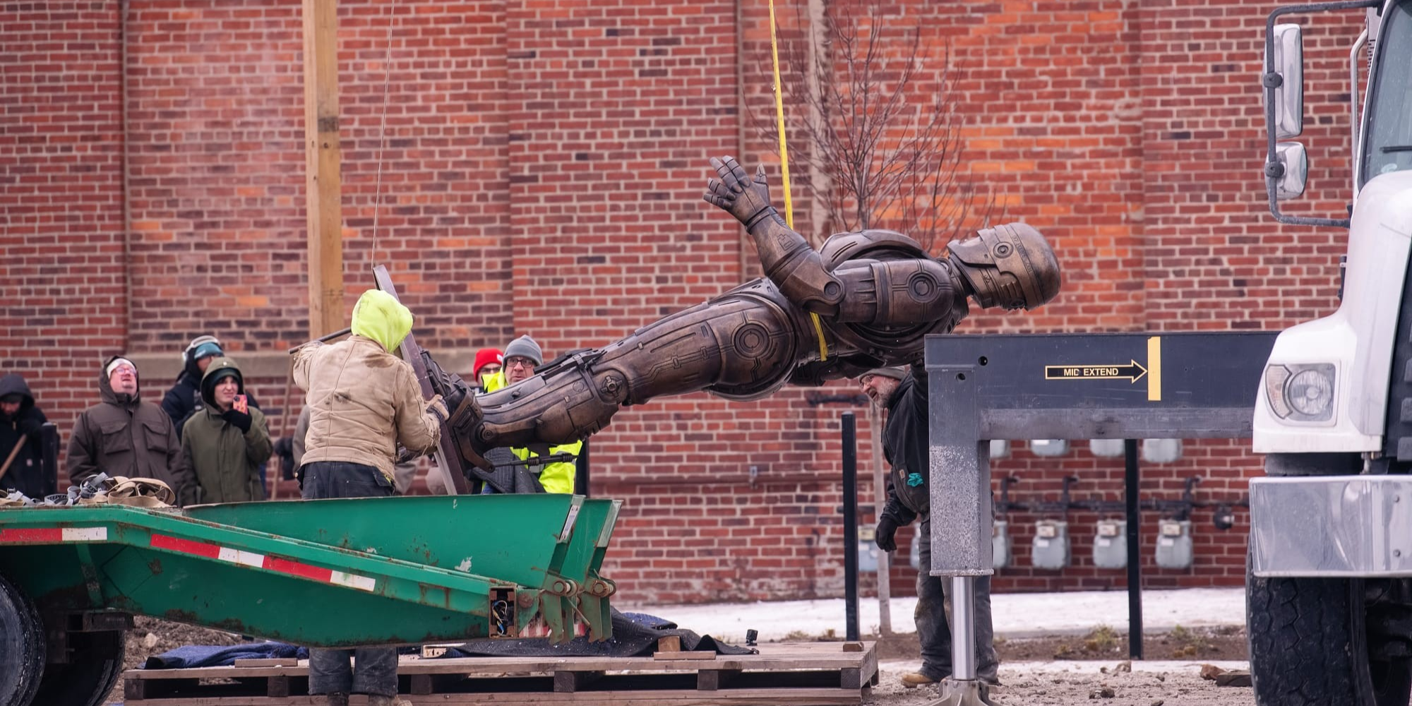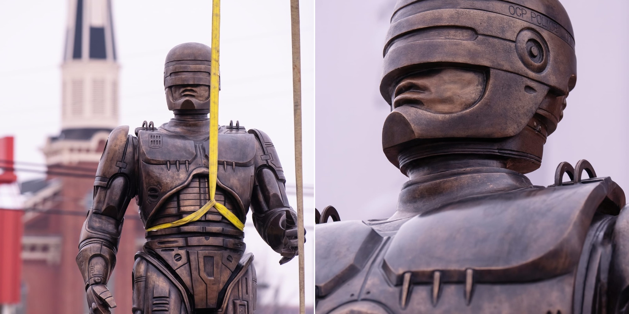 В американском Детройте бронзовый памятник Робокопу весом 1,6 тонны и высотой более 3,3 метра. На реализацию проекта ушло 15 лет, идею создания фигуры киборга‑защитника из фильма 1987 года начали воплощать ещё в 2010‑м после шутливого твита, что городу нужен свой Рокки Бальбоа.