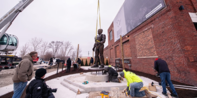 В 2012‑м горожане и поклонники фильма собрали более 67 тысяч долларов на Kickstarter, а скульптор Джорджио Гикас завершил работу в 2017‑м. Однако из‑за пандемии и организационных трудностей проект долго оставался «на удержании».