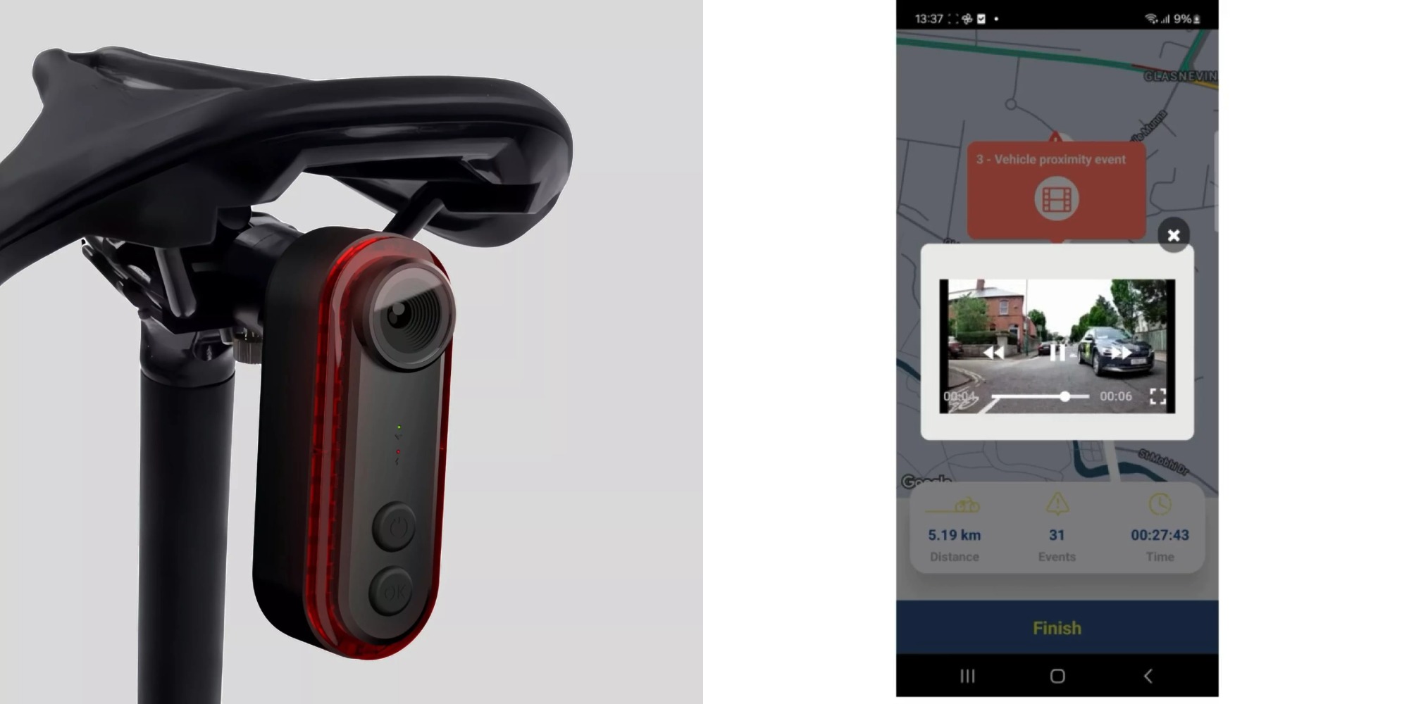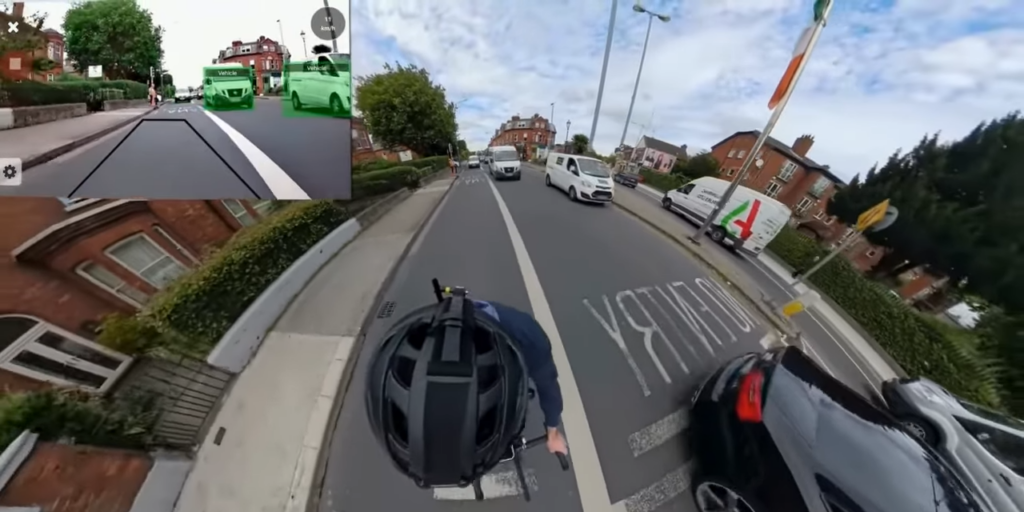 Система на базе ИИ анализирует дорожную ситуацию и распознаёт автомобили, автобусы и другие велосипеды, приближающиеся сзади. В случае опасности она предупреждает пользователя визуальными или аудиосигналами, причём чем выше риск столкновения, тем громче сигнал. Можно регулировать порог расстояния, при котором срабатывает оповещение.