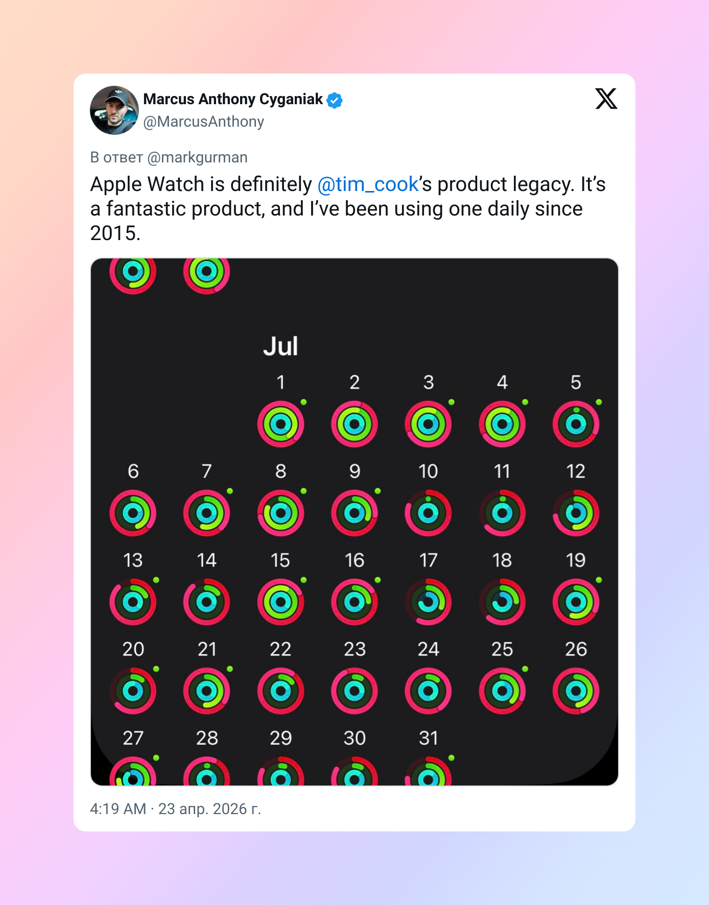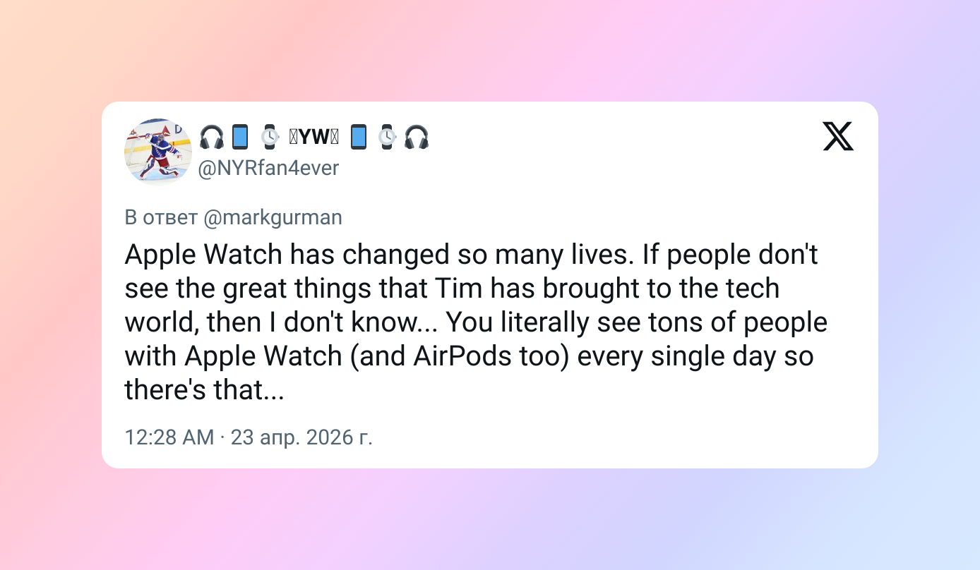 Apple Watch преобразили жизни миллионов. Если люди не замечают, сколько всего крутого Тим дал индустрии технологий, то у меня просто нет слов… Вы же буквально на каждом шагу видите Apple Watch и AirPods. Это ли не лучший аргумент?