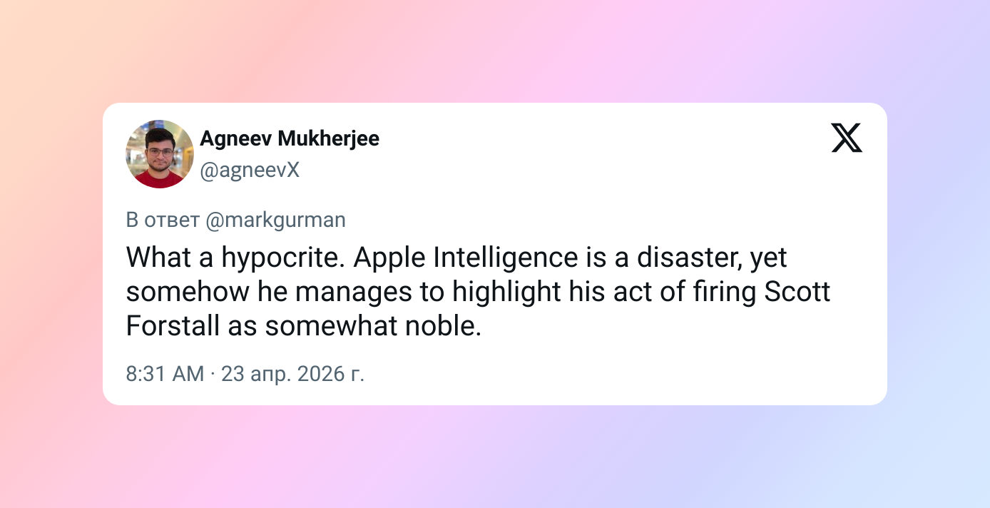 Ну и лицемер. Apple Intelligence — это полный провал, но он умудряется преподносить увольнение Скотта Форсталла чуть ли не как благородный поступок.