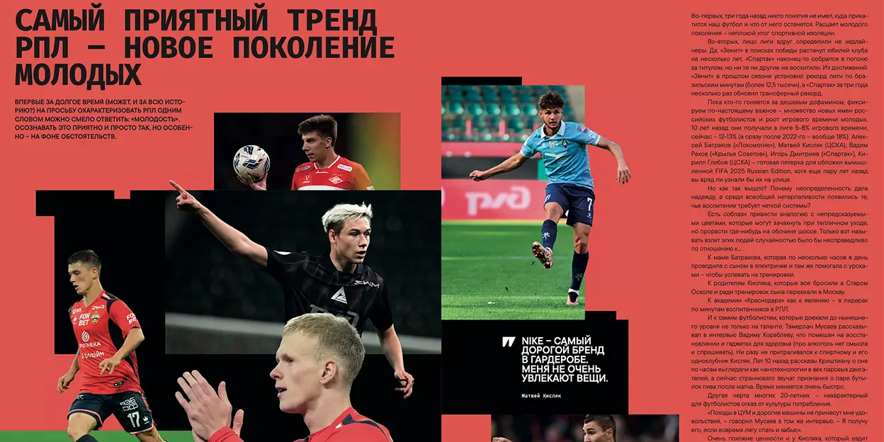 Также команда собрала ключевые события года. Это тренд на новое поколение молодых игроков, появление нового чемпиона в РПЛ, возвращение России на международные турниры, беговой бум в стране и другие важные темы.
