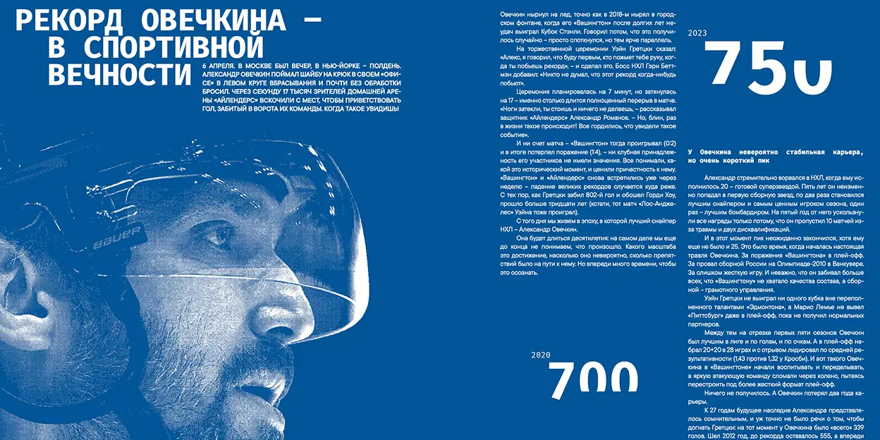Спортивный сайт «Спортс”» запустил своё первое печатное издание — ежегодный журнал «Спортс”. Итоги года». В нём редакция зафиксировала 2025 год в спорте во всех ключевых измерениях: главные явления и тенденции, бизнес-ландшафт индустрии, поведение аудитории и прогнозы на будущее. Дизайн разработала команда журнала Ornament.