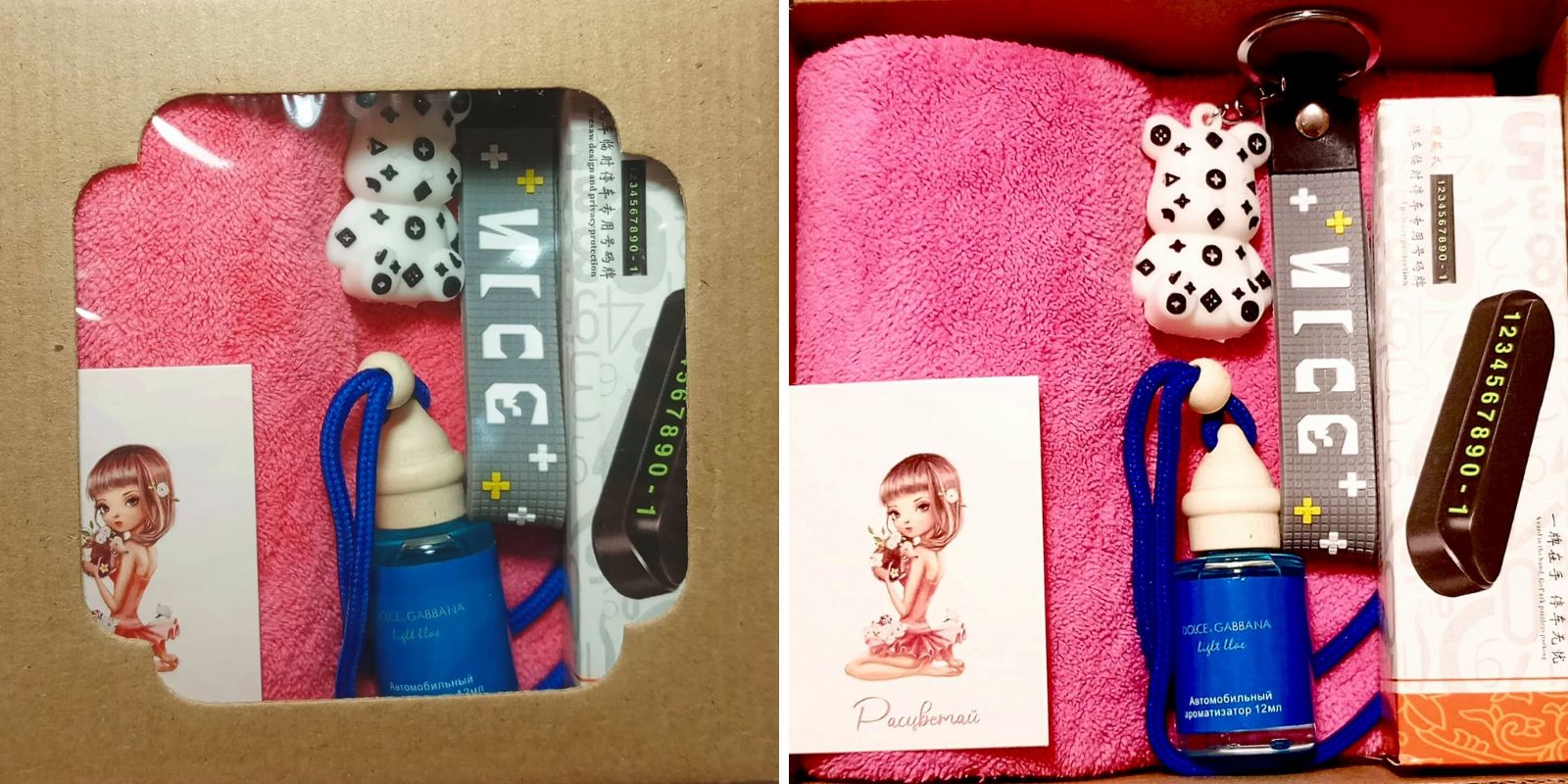 Здесь собрано то, что не всегда купишь себе сам, но обрадуешься, когда получишь в подарок: ароматизатор в авто, салфетка из микрофибры, которая не оставляет разводов на пластике и ЛКП, и брелок для ключей. А ещё автовизитка с номером телефона, которую оставляют в машине, чтобы с водителем могли связаться, если он припарковался неудачно.