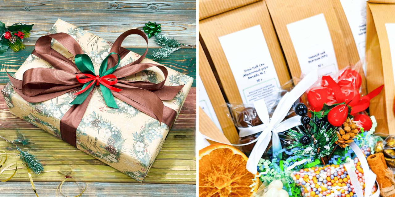 Простой способ сделать человеку приятно — подарить набор из шесть видов чая и пяти видов орехов, ягод и сухофруктов в шоколаде. Угощения собраны в коробке, украшенной упаковочной бумагой и роскошным бантом.