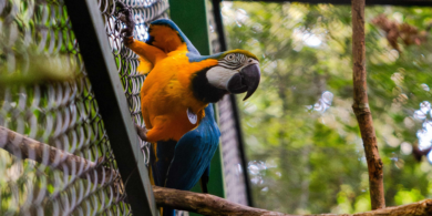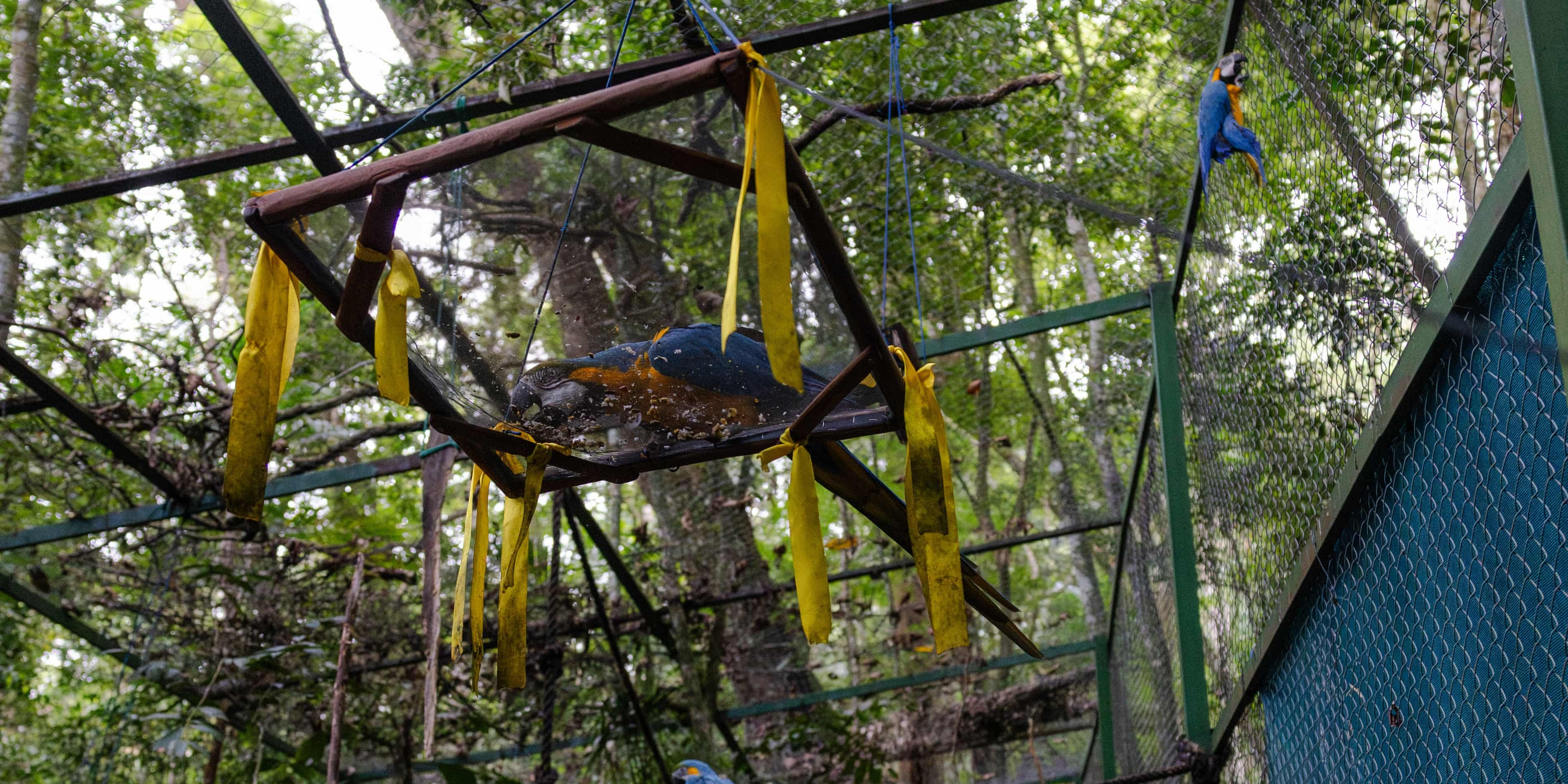 В городском парке Тижука в Рио‑де‑Жанейро снова сине‑жёлтые попугаи ара, которые не встречались в окрестностях города почти 200 лет. Пока их выпускают временно в рамках адаптационной программы.