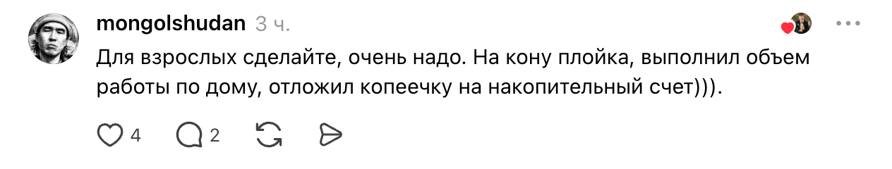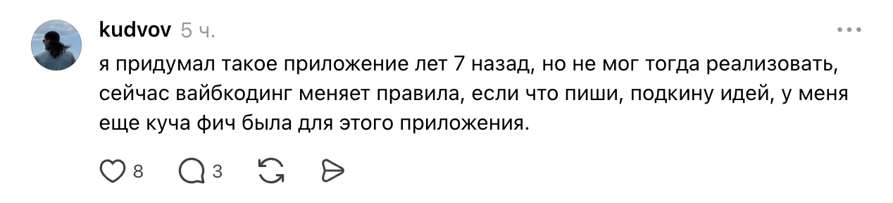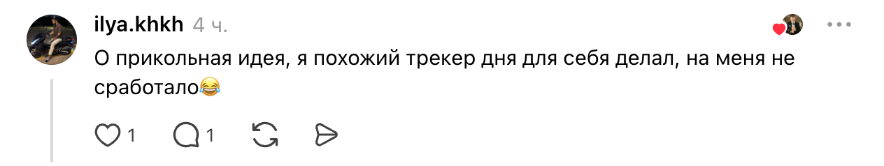 Автор Do it! Игорь активно с подписчиками в Threads и намекает, что у него есть идеи, как превратить трекер в универсальную систему для всех возрастов. Он также рассказал, что потратил на разработку около 3 тысяч часов, каждый из которых обходился ему примерно в 20 долларов (≈1,5 тысячи рублей). В итоге реализация проекта стоила около 60 тысяч долларов (≈4,5 миллиона рублей). В эту сумму вошли iOS‑ и Android‑версии, дизайн, менеджмент, серверная инфраструктура и так далее.