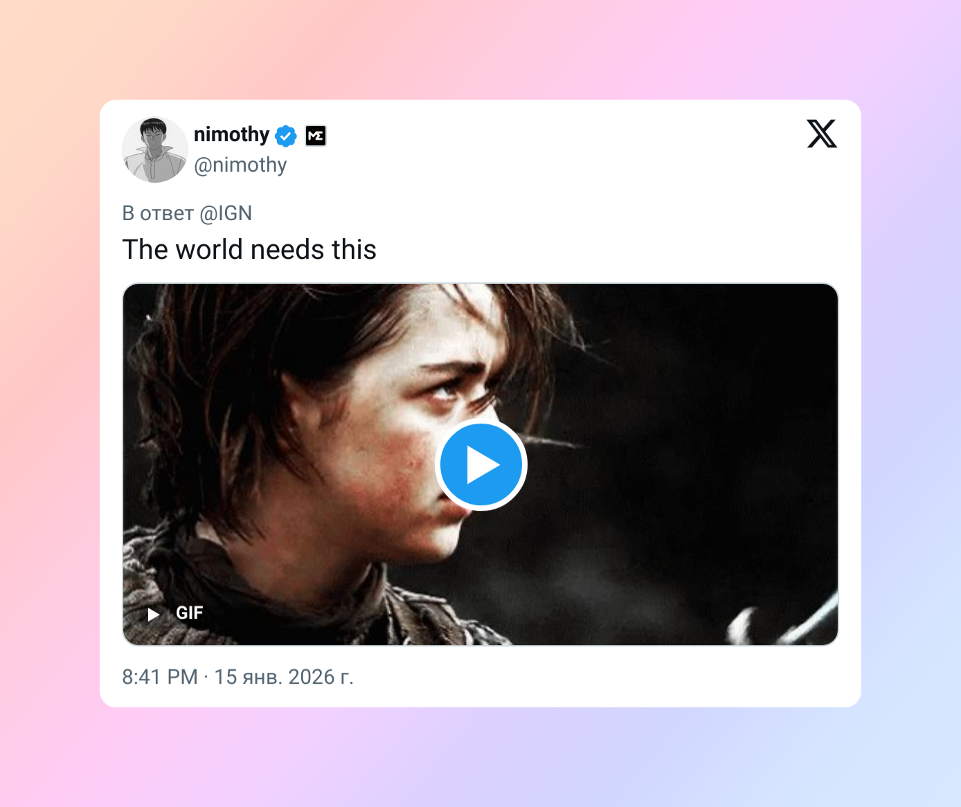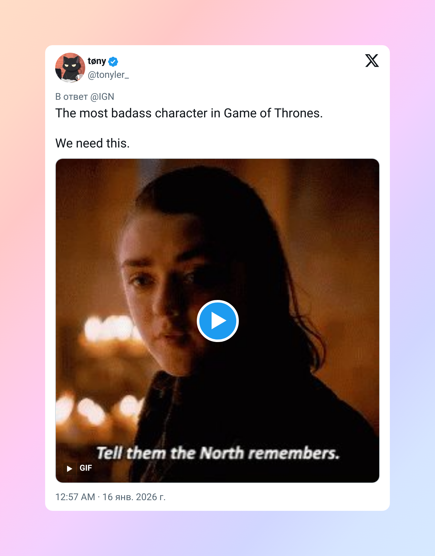Арья крутая, я буду смотреть.