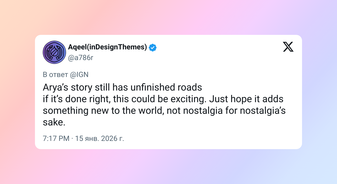 История Арьи всё ещё не закончена. Если всё сделать правильно, может получиться действительно интересно. Главное, чтобы сериал привнёс в мир что-то новое, а не просто играл на ностальгии ради ностальгии.