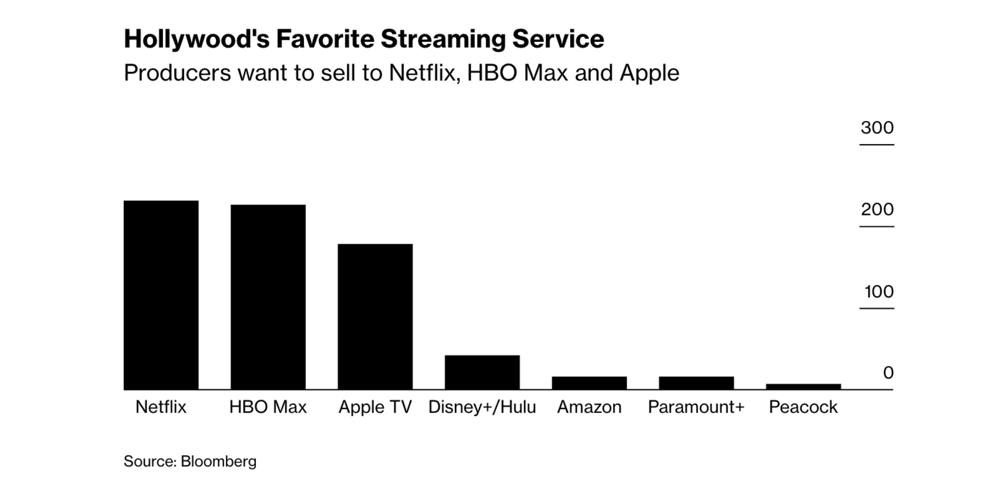 В прошлом году Netflix уверенно удерживал первое место. В этом году он снова в лидерах, однако HBO Max практически догнал его по популярности. Apple TV тоже значительно укрепил свои позиции.