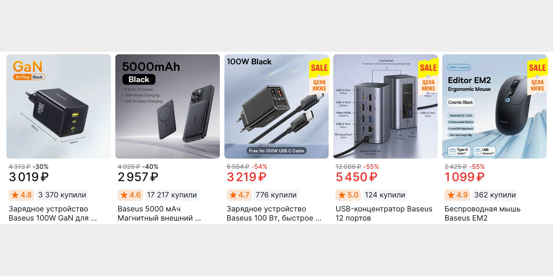 В BASEUS Store собраны внешние аккумуляторы, адаптеры питания и зарядные станции, лампы, мыши, держатели для смартфонов, хабы и многое другое. В трёх магазинах от Ugreen — Ugreen Store, UGREEN Flagship Store и UGREEN Direct Store — вас ждут пауэрбанки, кабели, наушники, разного вида адаптеры, подставки для гаджетов, хабы, станции и даже инструменты — выбор огромный.