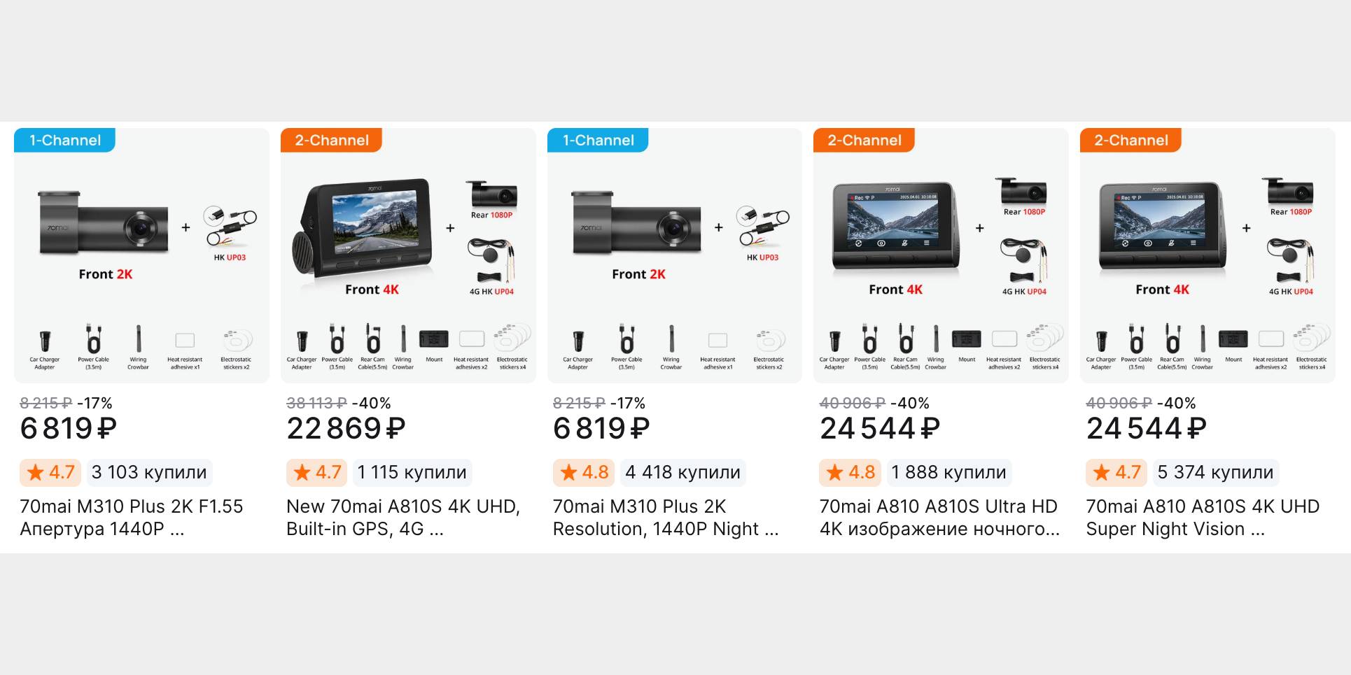 Производитель 70mai продаёт видеорегистраторы и задние камеры, которые собраны в магазине 70mai Store, а в BASEUS AutoTreasure Store Store можно купить стартеры, зарядки в прикуриватель, компрессоры, мини-пылесосы и прочую технику для авто.